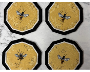 Absorbent Coasters, Bee coasters, fabric unbreakable coasters.