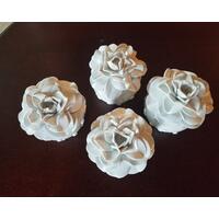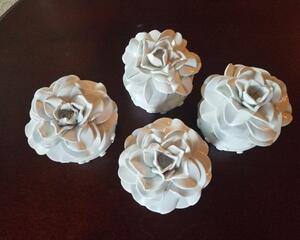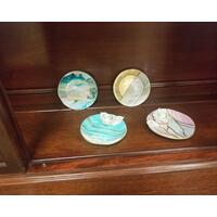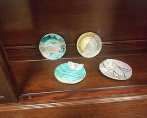 These are handcrafted clay marbled jewelry boxes. Outside they are marbled in white, black, and silver with gold accents, while inside in a beautiful bold red.