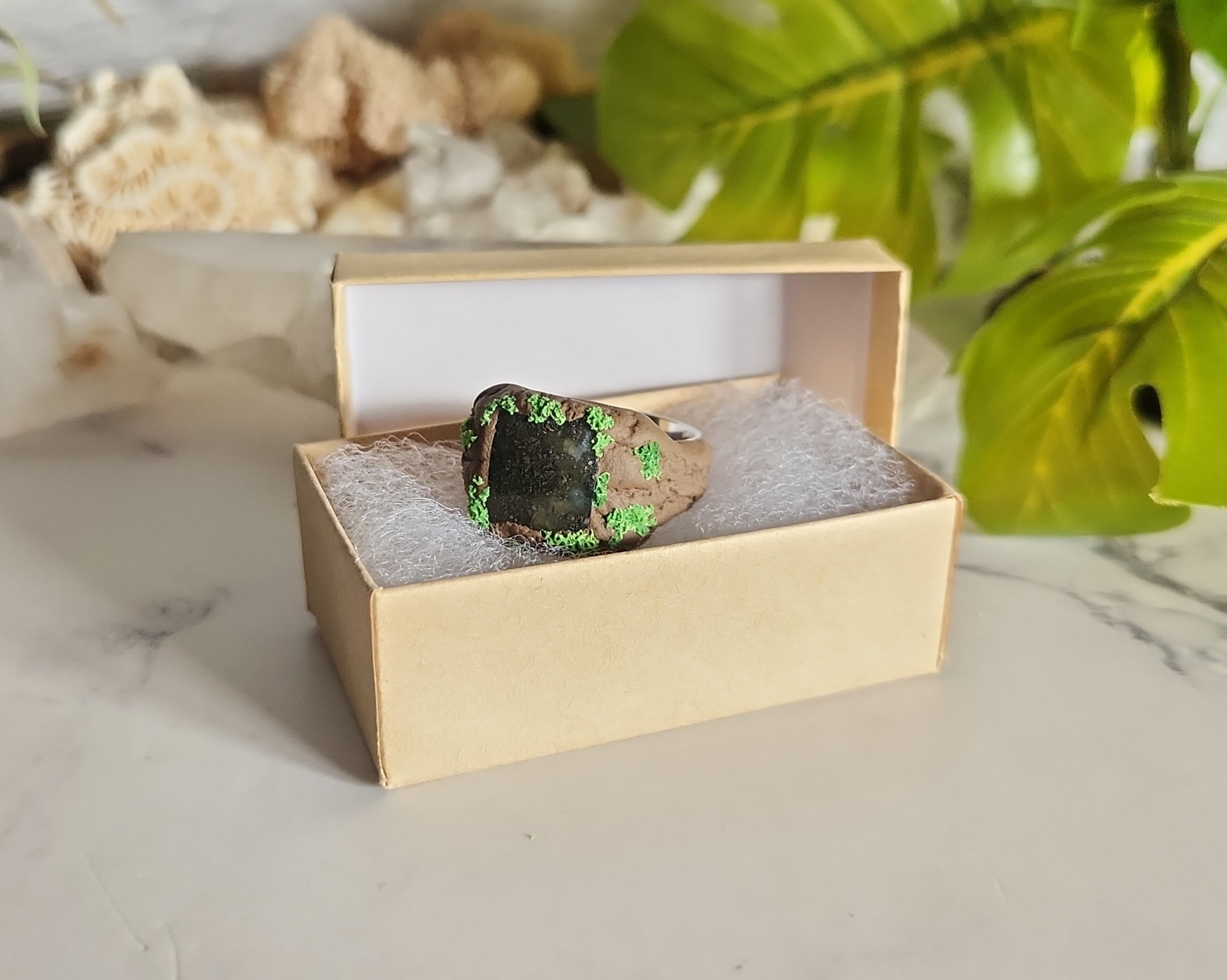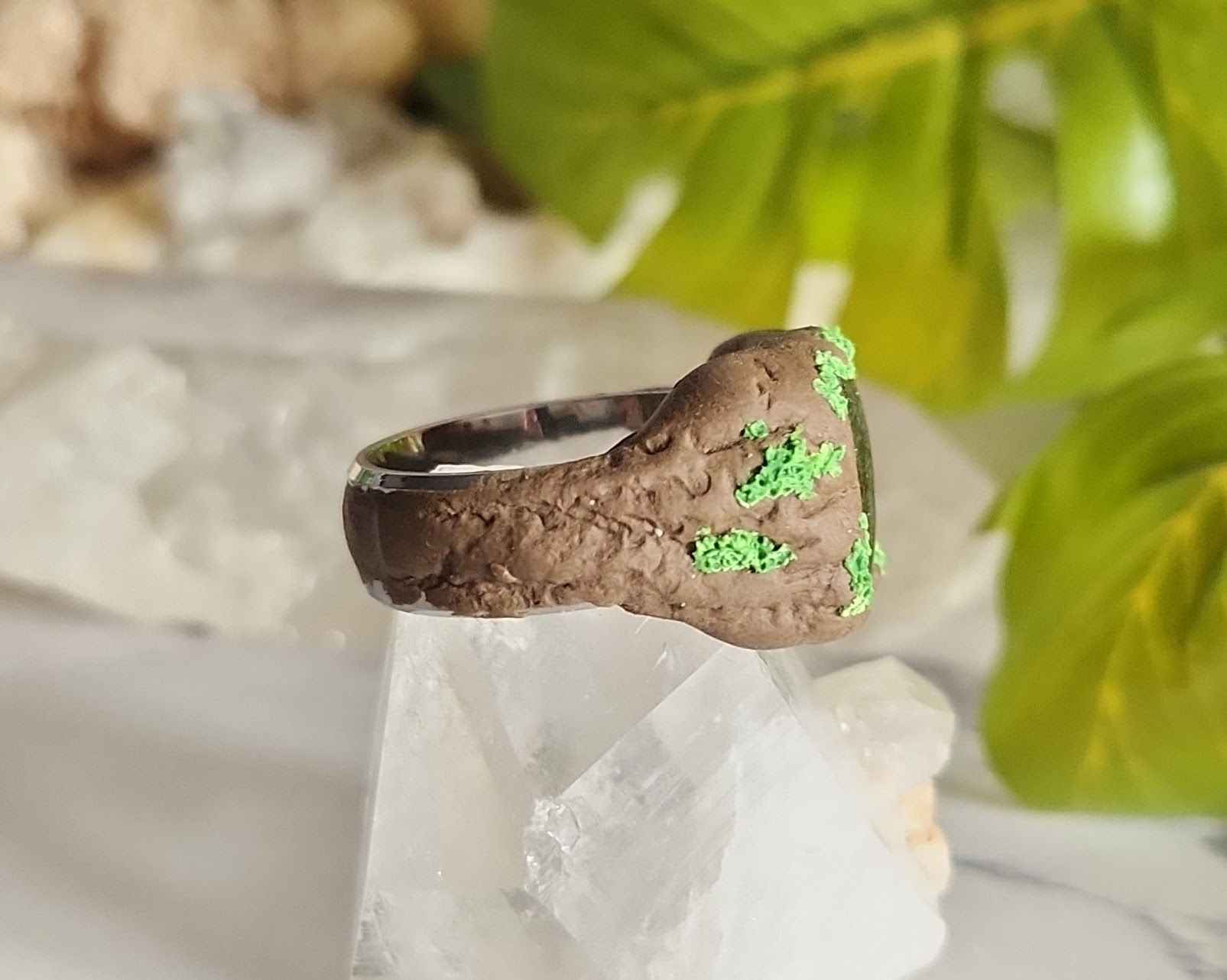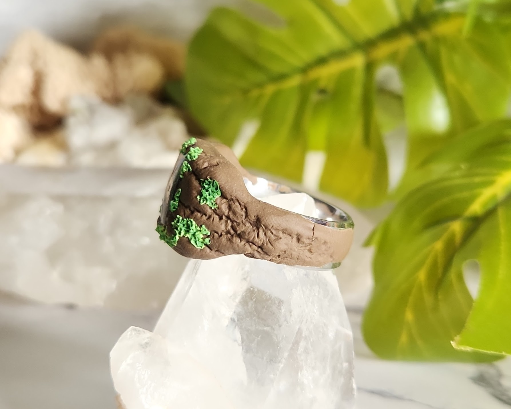 This ring makes a thoughtful gift for nature lovers, metaphysical practitioners, or anyone who feels connected to earthy, grounding energy. Whether worn as a symbolic reminder of resilience or simply as a distinctive accessory with organic flair, it brings depth, personality, and a touch of woodland magic into everyday life.