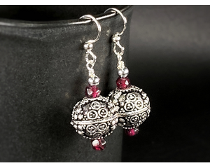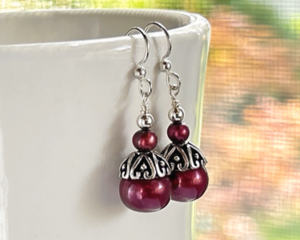 White button pearl earrings topped with a cluster of red garnet wire wrapped beads in sterling silver by MariesGems.