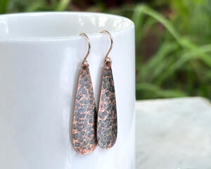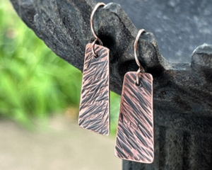 Textured copper spike earrings with rose gold filled ear wires by MariesGems.
