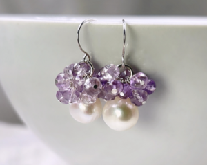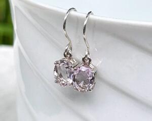 Faceted lavender amethyst gemstone earrings bezel set in sterling silver with wire wrapped accents and sterling silver ear wires.
