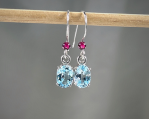 Prong-set blue topaz studs with sterling silver tulip cup earrings jackets by MariesGems.