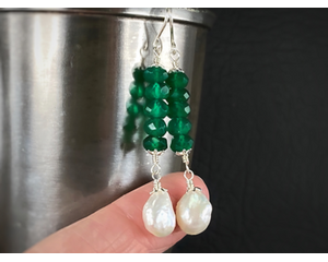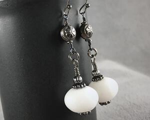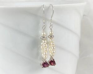 White button pearl earrings topped with a cluster of red garnet wire wrapped beads in sterling silver by MariesGems.