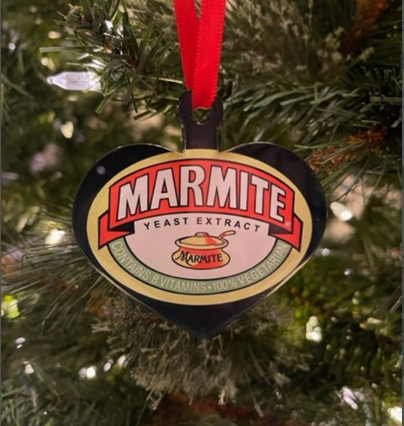 Unique Design: Crafted in the iconic heart shape, our ornament is a delightful fusion of Christmas cheer and the unmistakable Marmite charm. It's a conversation starter and a showstopper!
