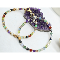 We are a family owned business for 35+ years. Every piece is hand-crafted and one-of-a-kind. We design and produce the silver and bronze charms and medallions featured in our pieces. We meticulously hand wrap the chains we use to showcase an artistic blend of precious and semi-precious stones and pearls. The top-grain leather we use is hand cut, textured, braided and painted in our studio