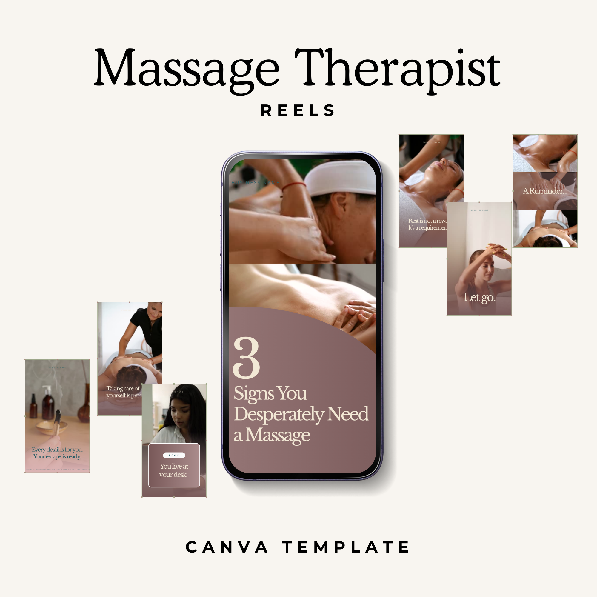 Inside, you’ll find a matching flyer, business card, and Instagram reel templates designed specifically for massage therapists and wellness practitioners. Each piece is fully editable in Canva, so you can customize colors, text, and details to fit your brand in minutes.