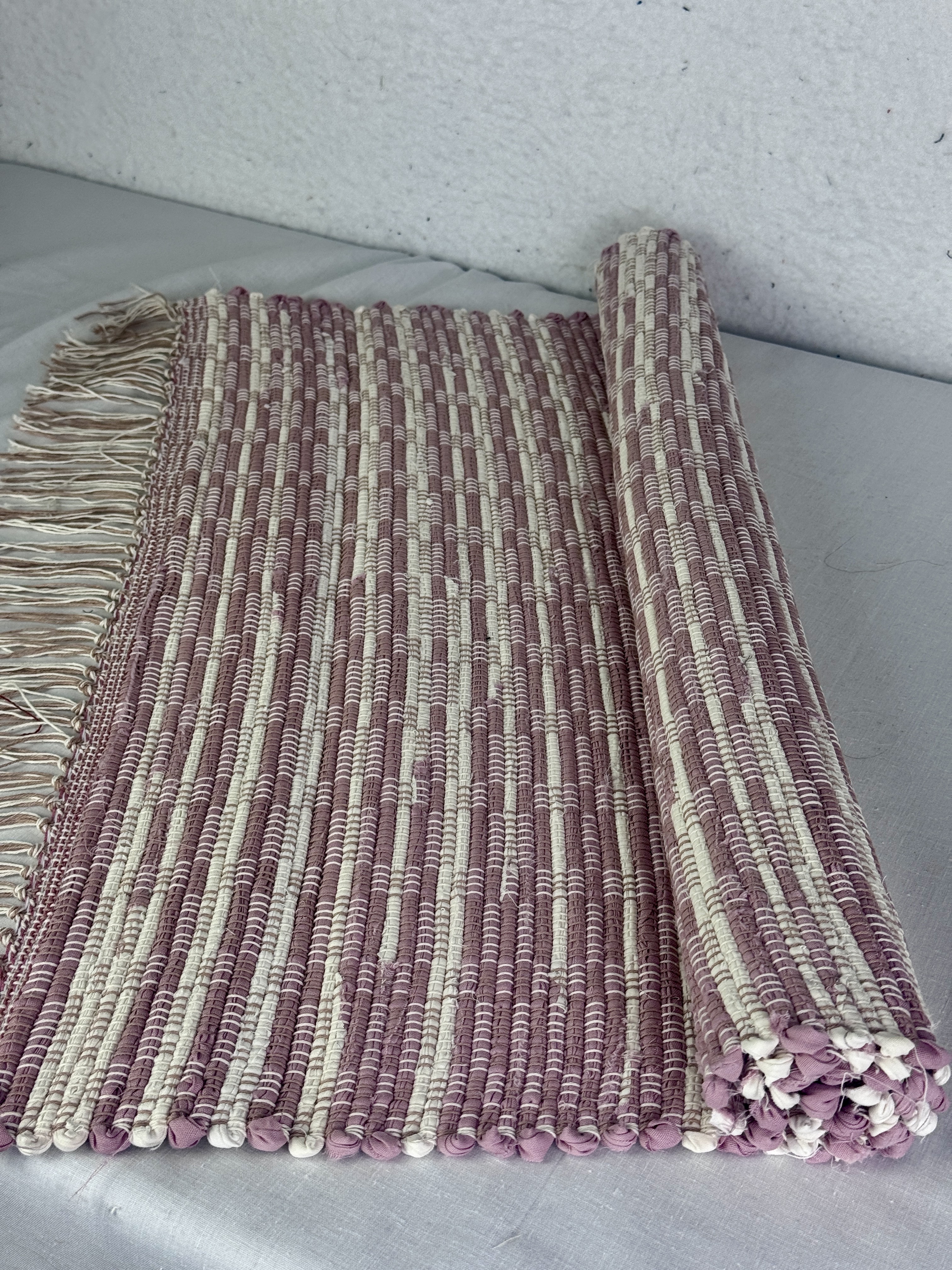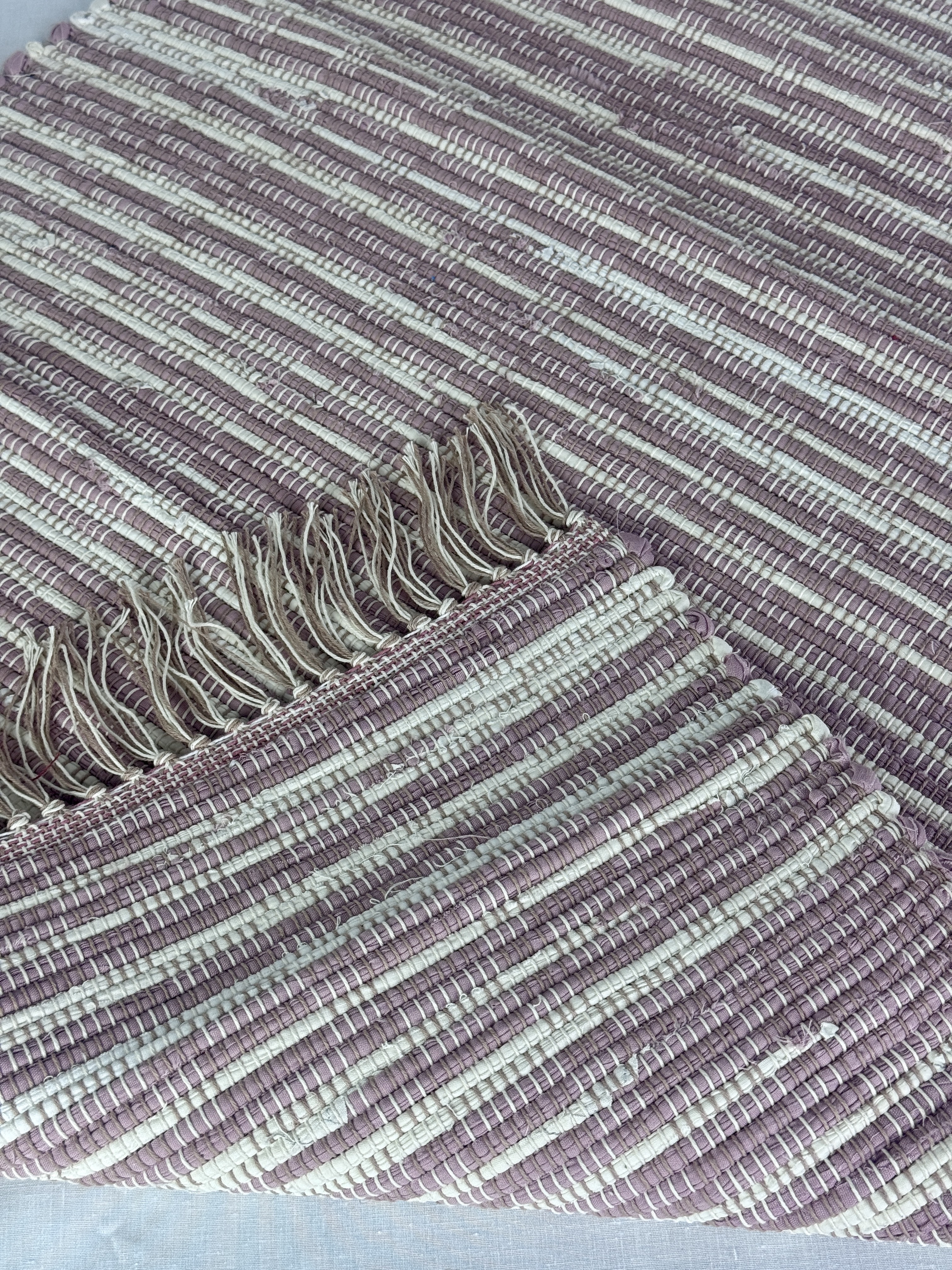 Every rug is meticulously handwoven on my trusty two-harness loom. I pour my passion and attention to detail into each weave, ensuring a quality that transcends trends. The impeccable straight edges and tightly woven strands are testaments to my dedication, while the variety of warp colors allows me to create pieces that complement any aesthetic, from modern minimalism to vintage charm.