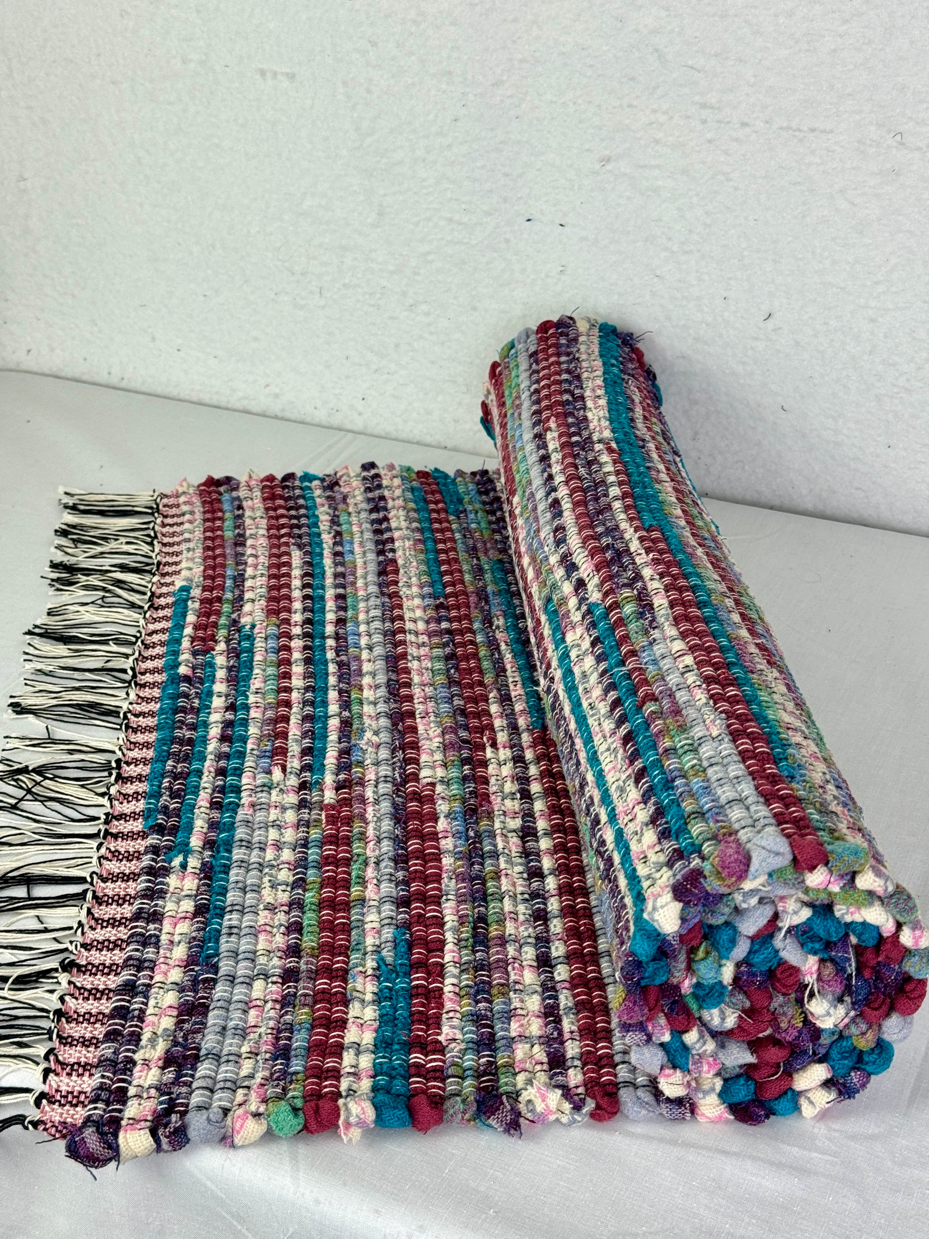 Discover the extraordinary world of recycling with my remarkable rugs. Crafted from once-beloved household textiles, these rugs breathe new life into forgotten fabrics. Each rug is a captivating tapestry of repurposed wonders, blending sweaters, socks, shirts, jeans, bedding, and beyond. Each rug lends its own uniqueness due to the blend of textures and colors.