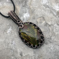 I had done some jewelry making previously, just for myself. I love necklaces and I like something that is different and unique. I don't want what everyone else has. I have always been fascinated with wire wrapped jewelry and after a few failed attempts, I finally got the hang of it. I like to make pieces that have more detail and a lot of weaving. I find the weaving both therapeutic and meditative. But, the weaving takes a lot of time and it takes 3 to 4 hours to make each one. I am always looking out for unique and unusual stones, so you may see things here you have never seen before. While I do know a lot of the different kinds of stones, occasionally I will buy stones that I can not verify when I look them up. If I'm not quite sure what the stone is, I will disclose that in my listings.