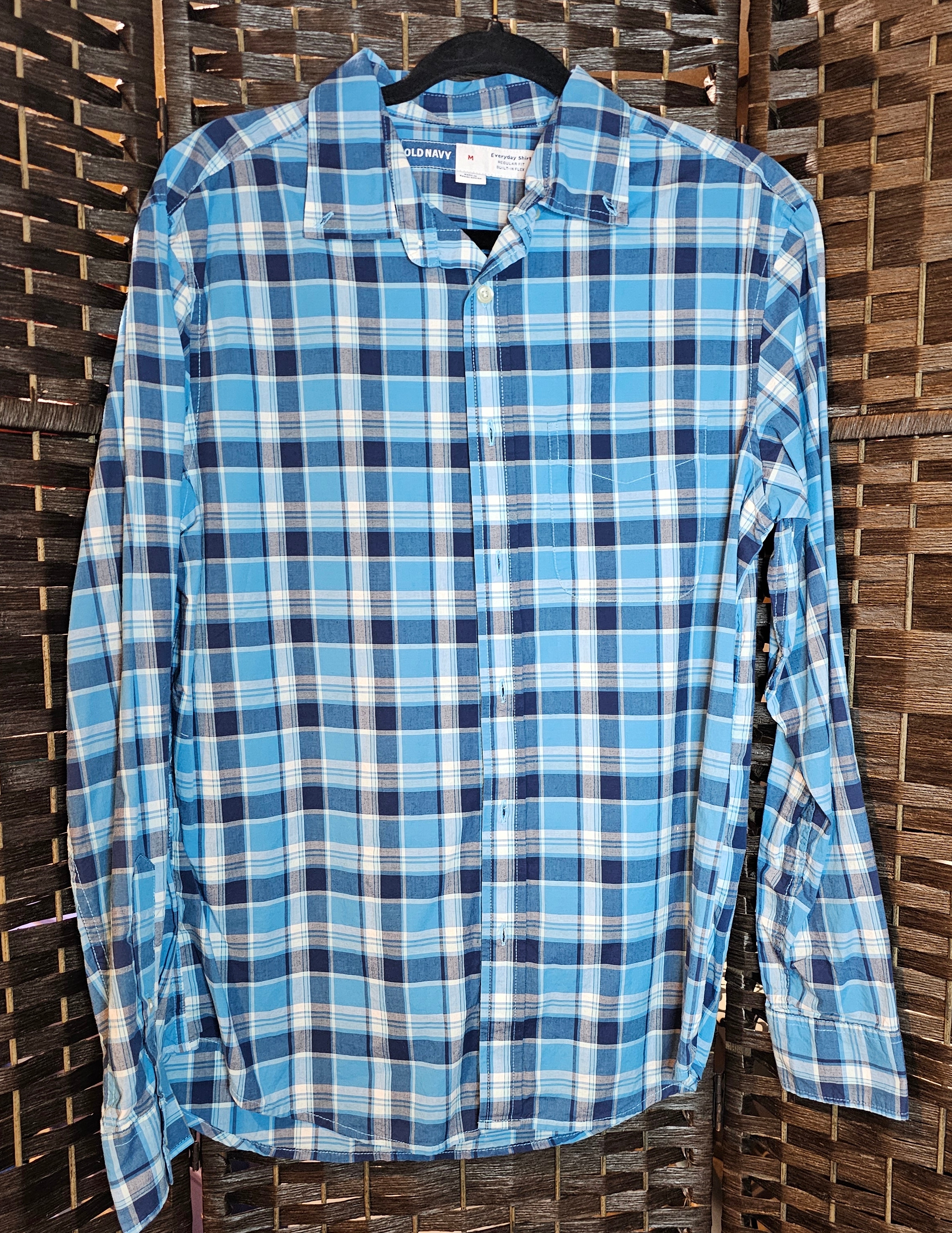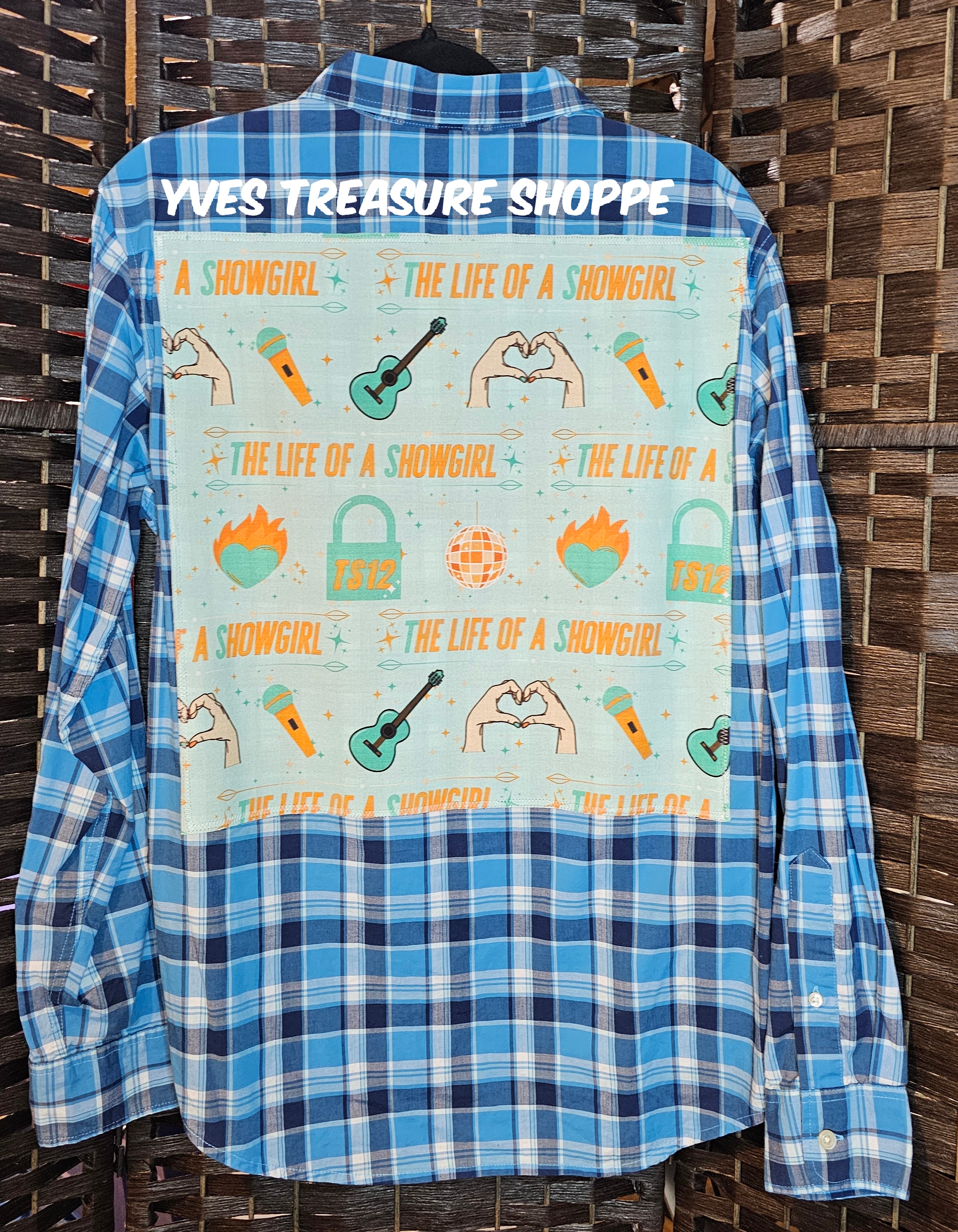 This is a new refashioned Old Navy Large Shirt. 22.5 inches across pit to pit. 29 inches long from top of shoulder to bottom of shirt. Embellished on back with a fabric Panel.