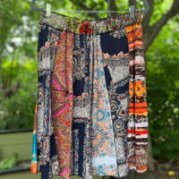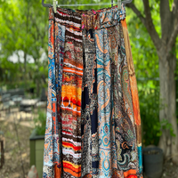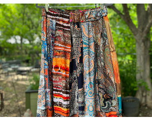 Why? Several colors of velvet combine to make a unique skirt. Dress it up for a fancy party or boho it out for a festival. It's up to you. These particular skirts are truly prettier than the camera can portray and the colors are so much richer. The velvets just don’t photograph well for me honestly. (I’m much better at sewing)! Fabrics are soft and with the added flexible wide elastic waistband are just about as comfortable as you can get. It's as easy to wash as your favorite tee. It’s slow fashion at its best - handmade by me using awesome clothing found at thrift stores and estate sales. And less textiles in the landfills.