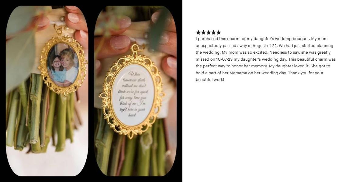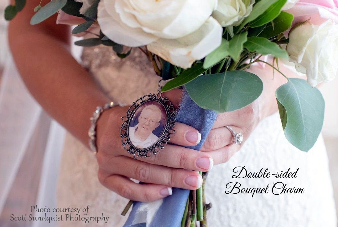 Memorial Bouquet Charm - Double-Sided Oval - Personalized with Photo - Gift for Bride