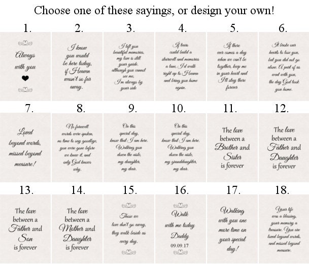 Remember those who cannot be with you on your special day with this double-sided memorial bridal charm. The Center of the charm measures 30mm x 40mm (1.18 inches x 1.57 inches), overall measurements approximately 2"x2.5". Available in Antique Bronze, Antique Silver, Gold or Rose Gold..