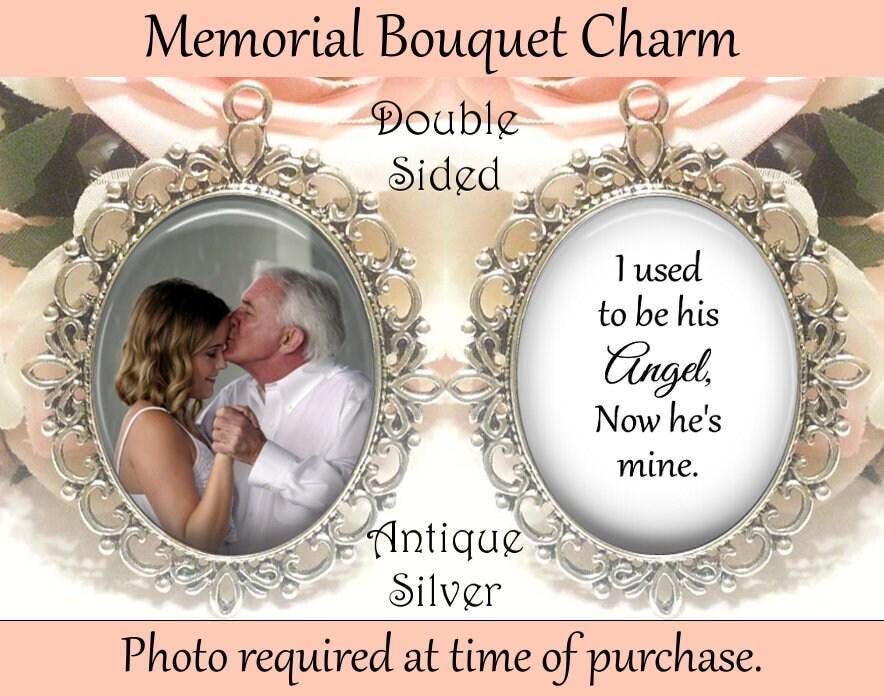 Memorial Bouquet Charm - Double-Sided Oval - Personalized with Photo - I used to be his angel