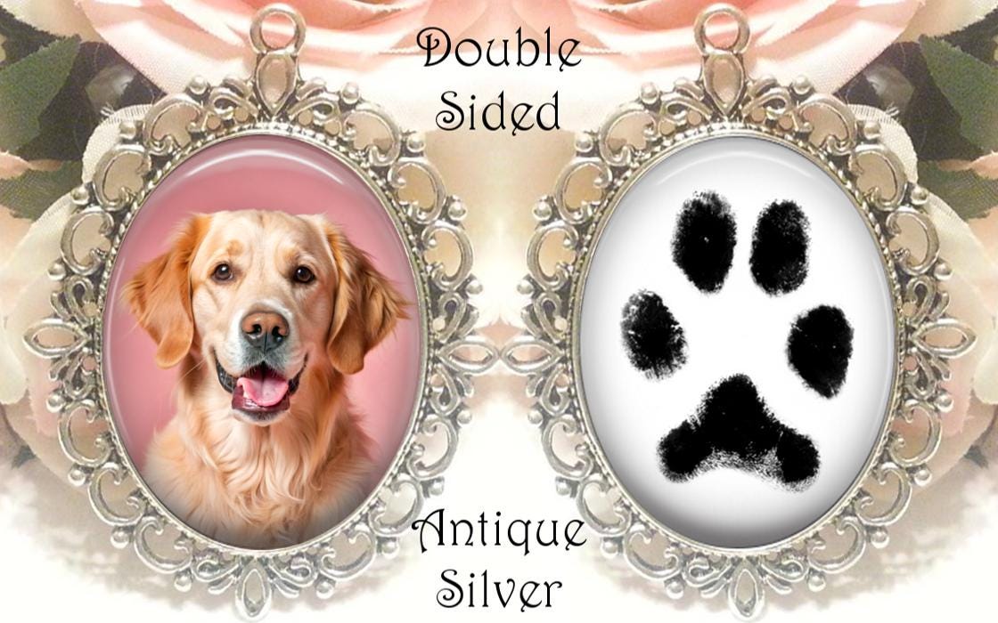Memorial Bouquet Charm - Double-Sided Oval - Pet Memorial - Personalized with Photo and actual paw print