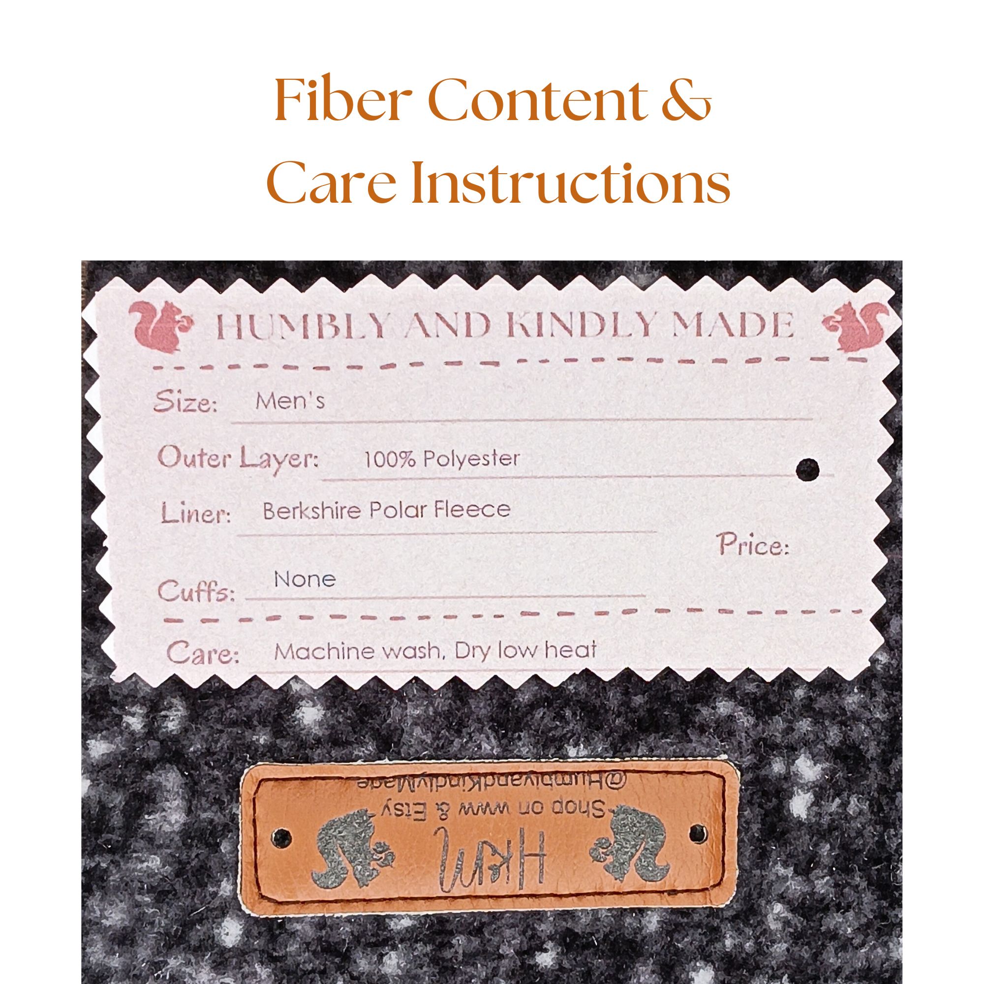 • Upcycled Fleece Mittens are handcrafted from recycled fleece pullovers and jackets. All fiber content is printed on the tag of each pair of mittens.