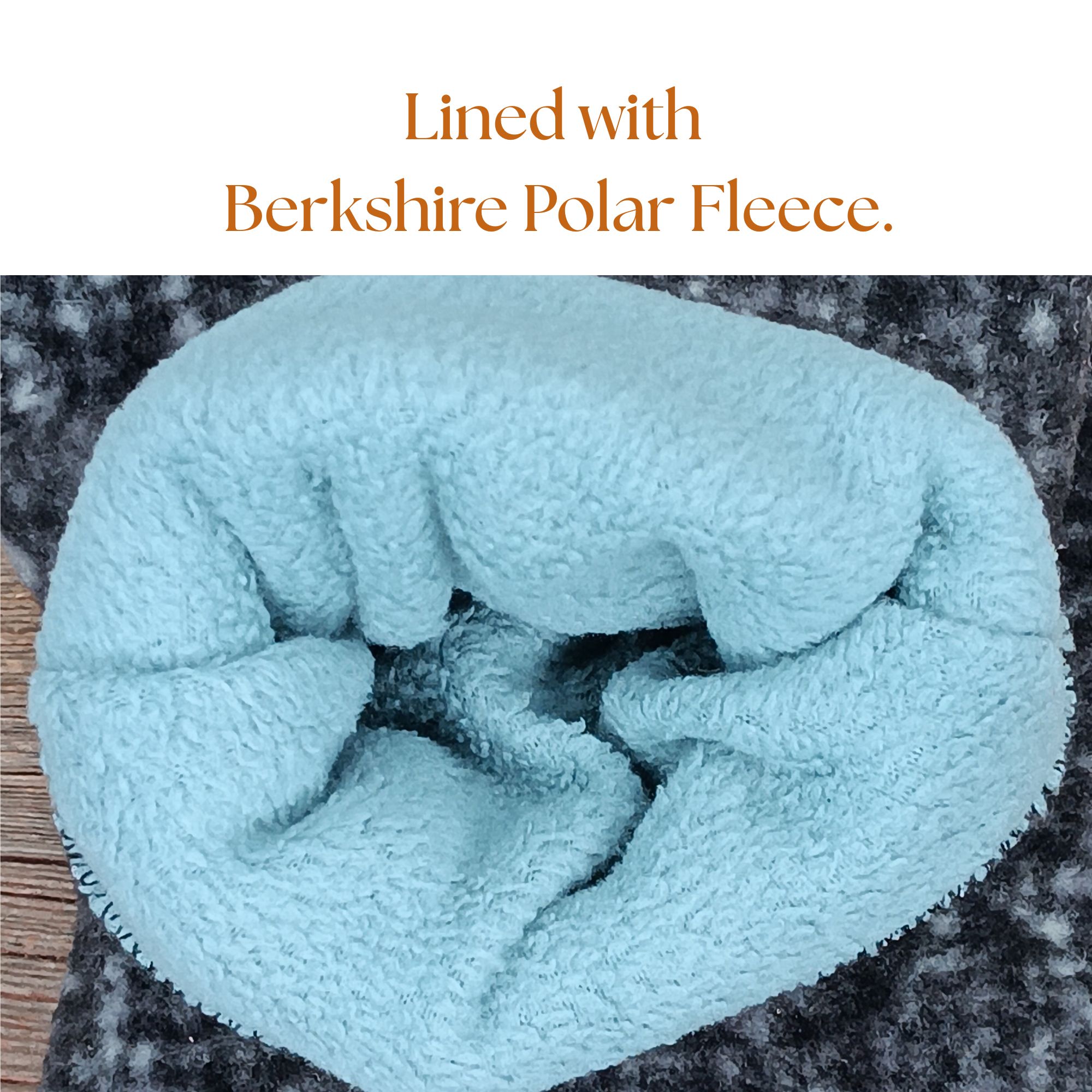 Each pair is double layered and fully lined with soft, non wool Polar Fleece, making them perfect for those who prefer warmth without wool.