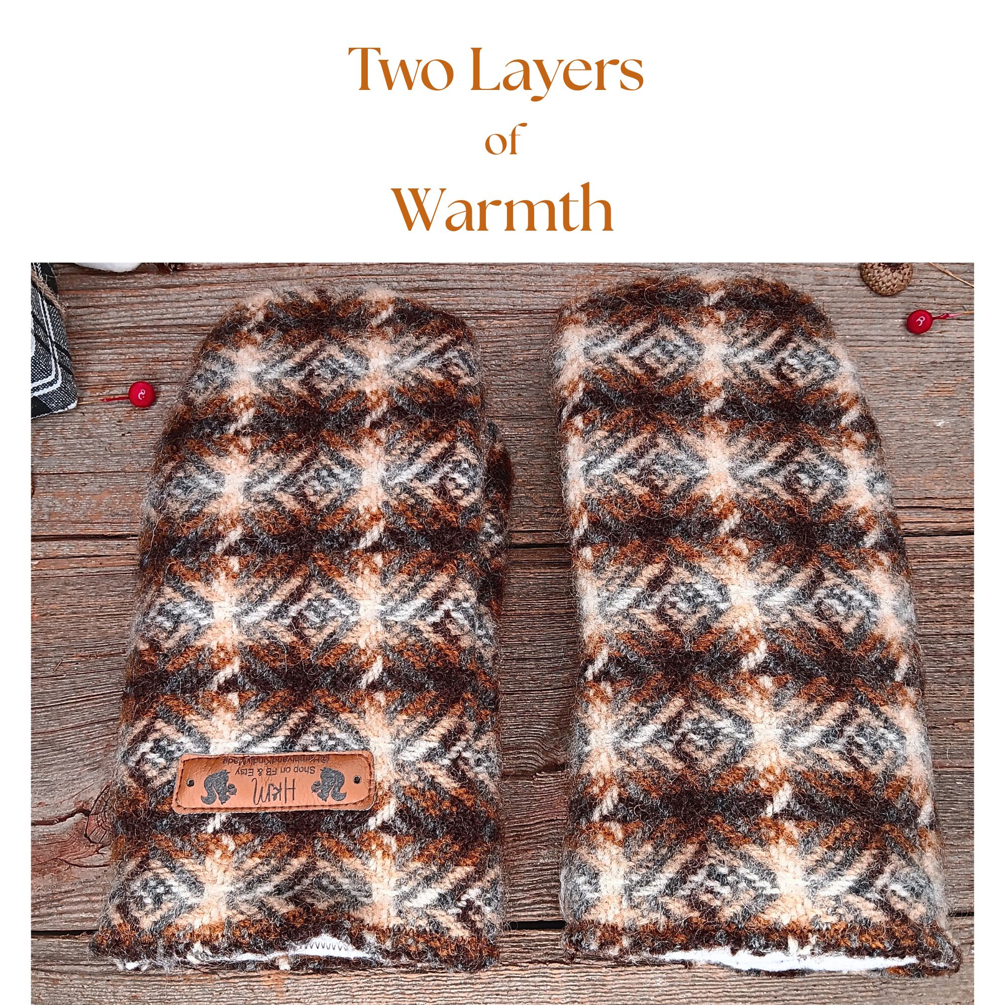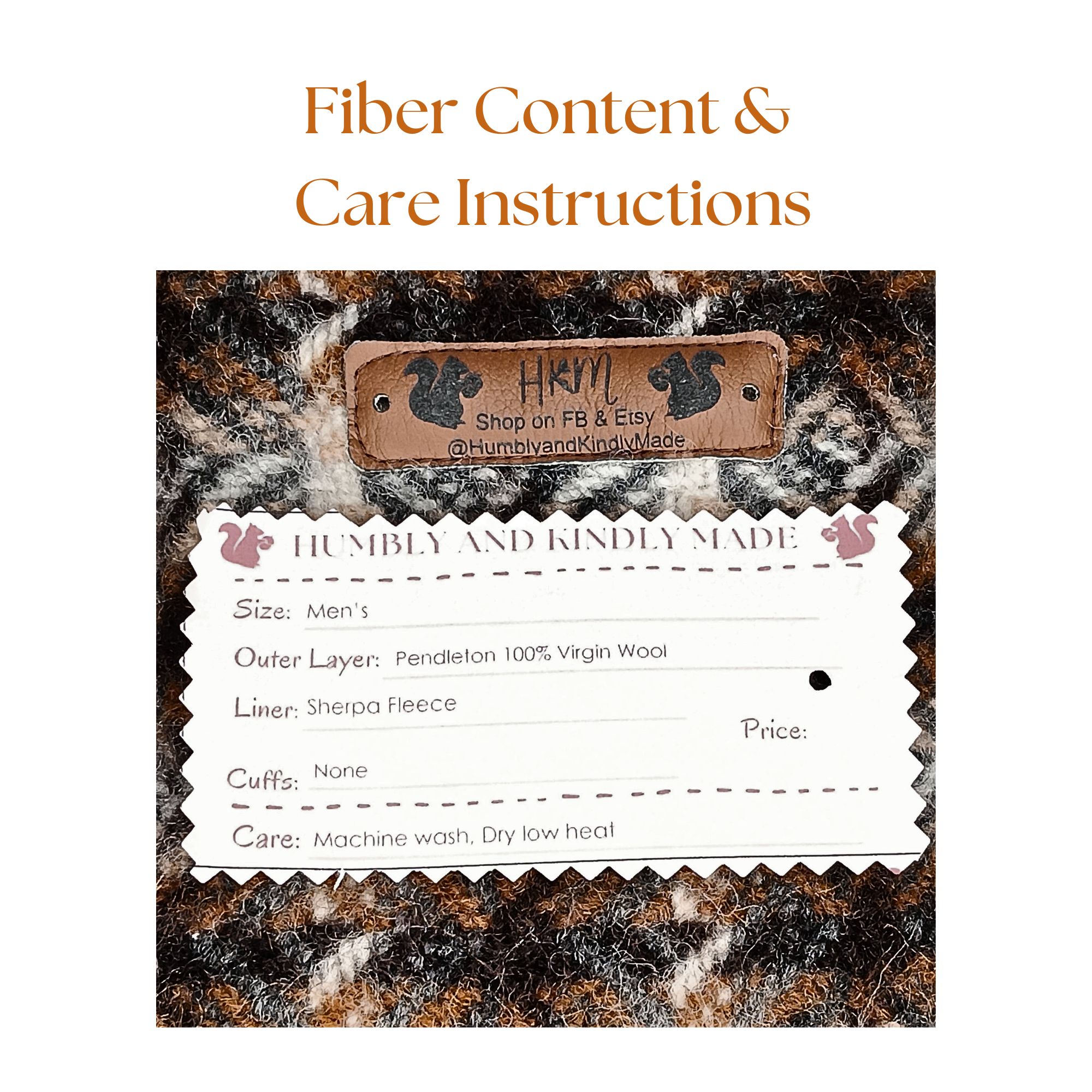 • Upcycled Wool Mittens are handcrafted from recycled wool sweaters & wool coats. All fiber content is printed on the tag of each pair of felted wool mittens and in the description box of each picture.