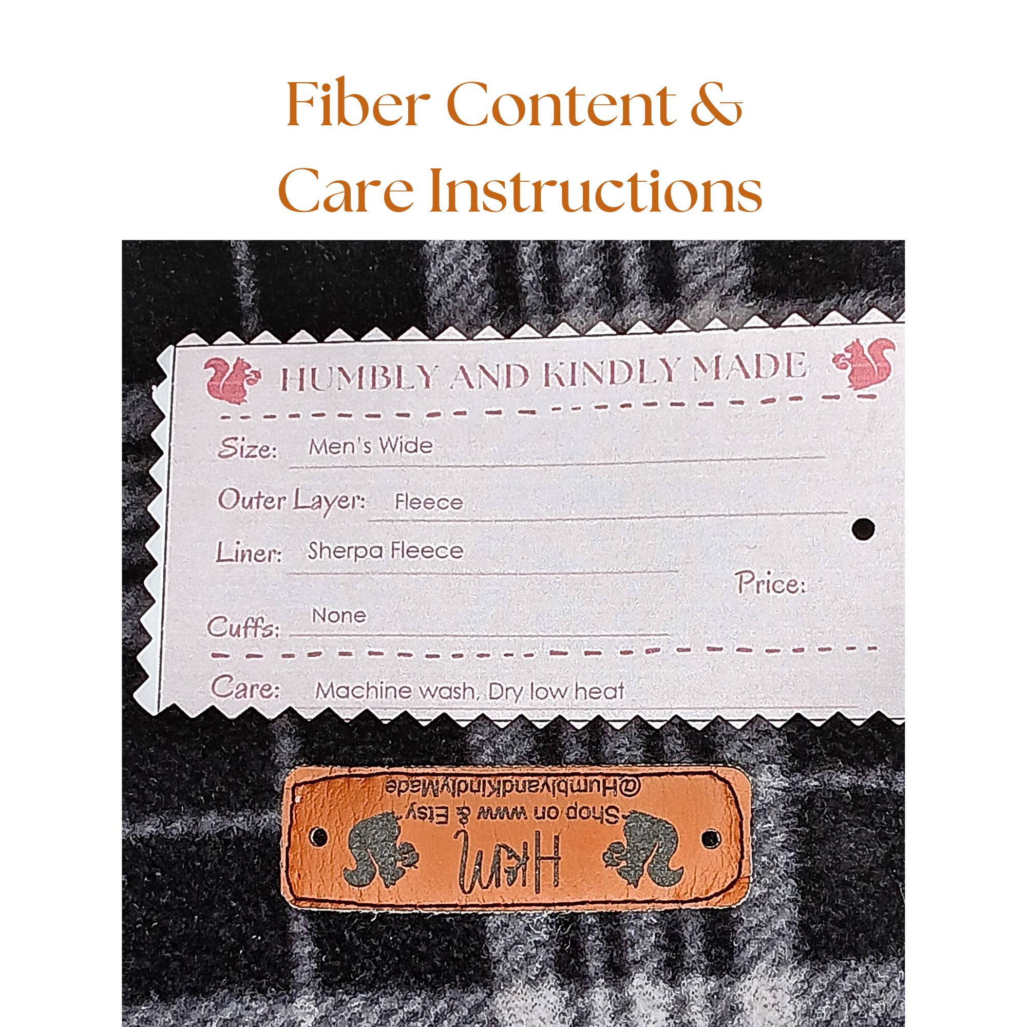 • Upcycled Fleece Mittens are handcrafted from recycled fleece pullovers and jackets. All fiber content is printed on the tag of each pair of mittens.