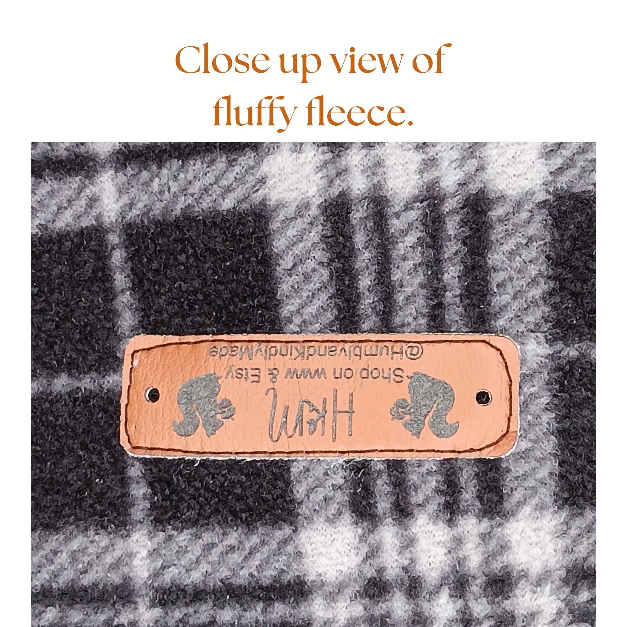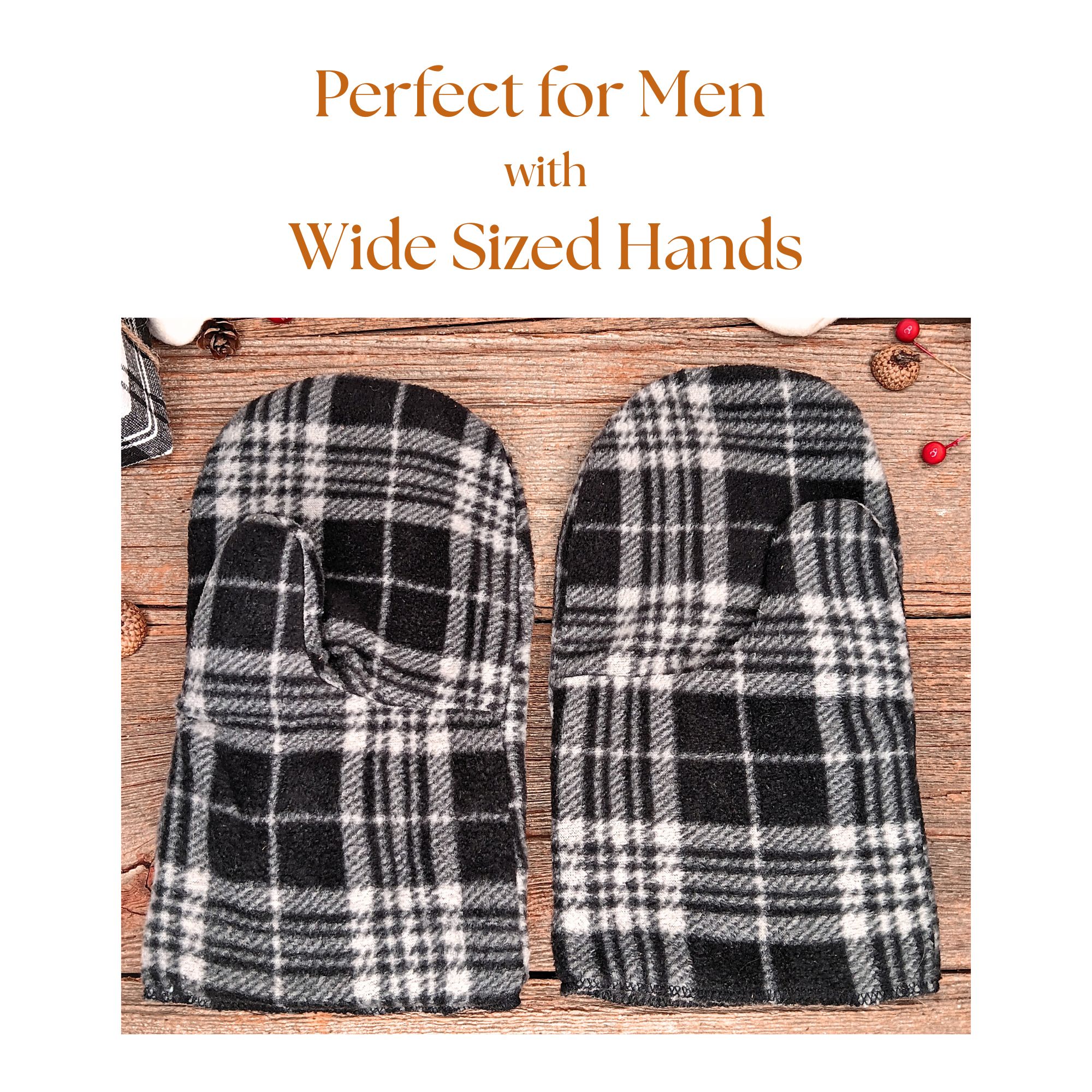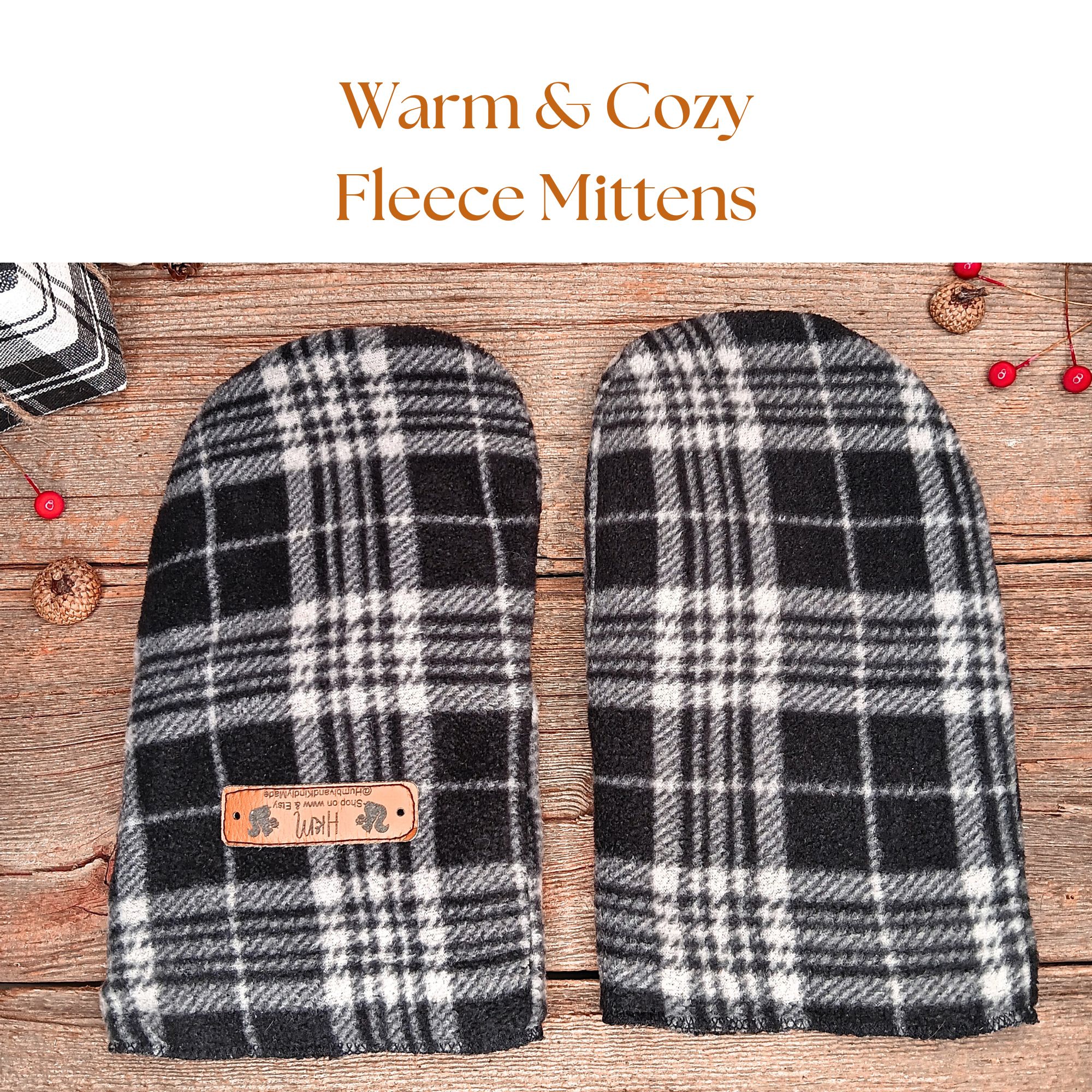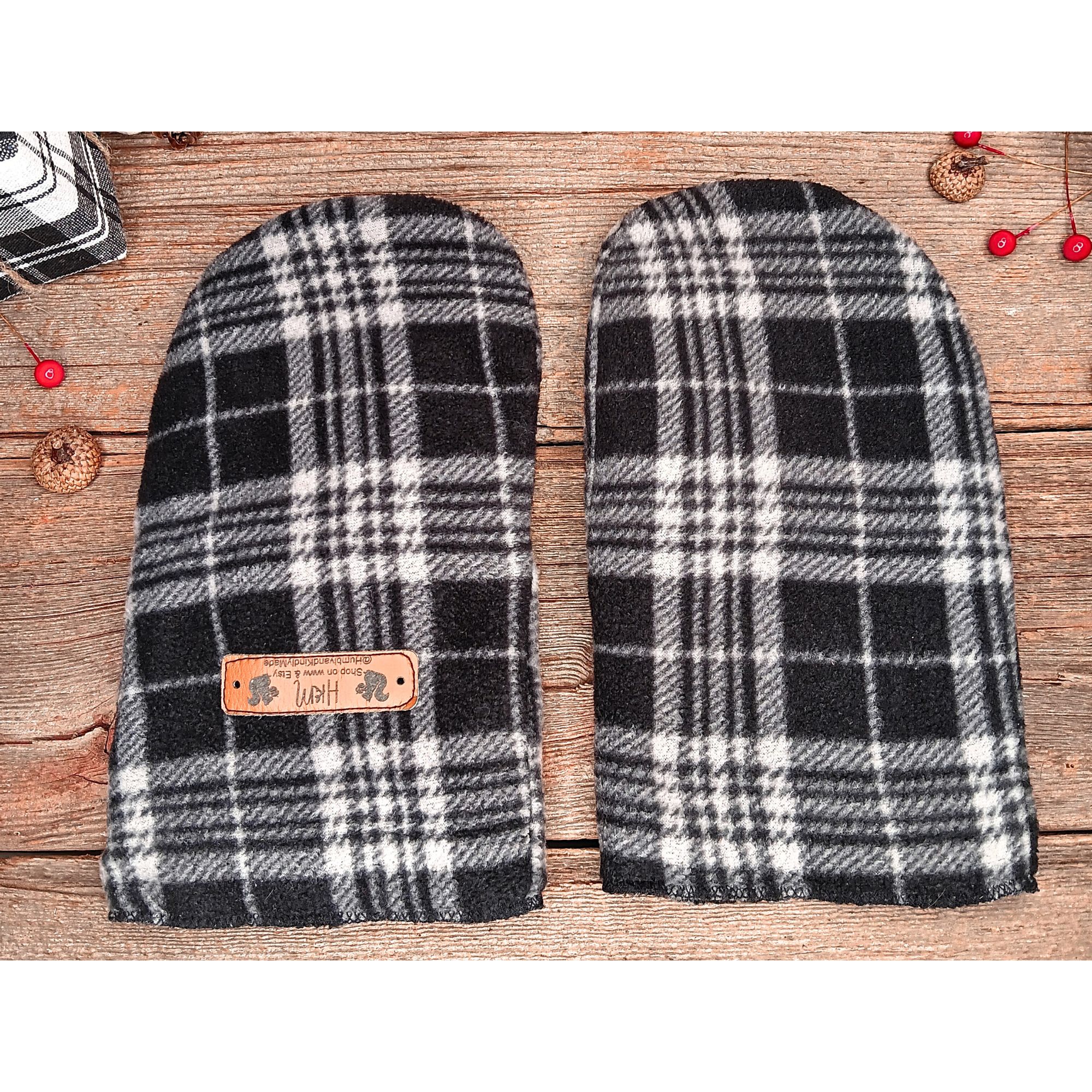 Men’s Wide Black Plaid Fleece Mittens – Warm, Double Layered & Handmade