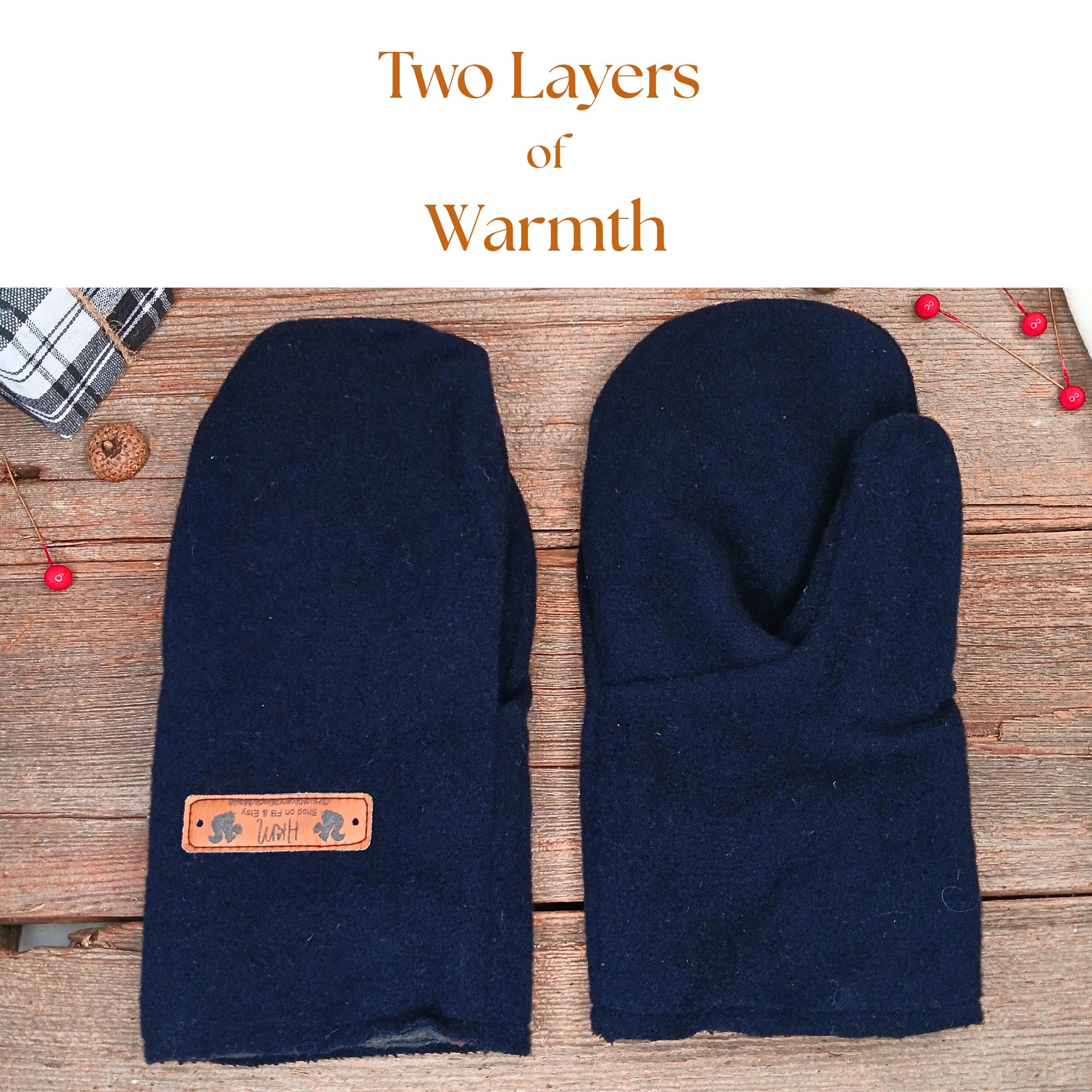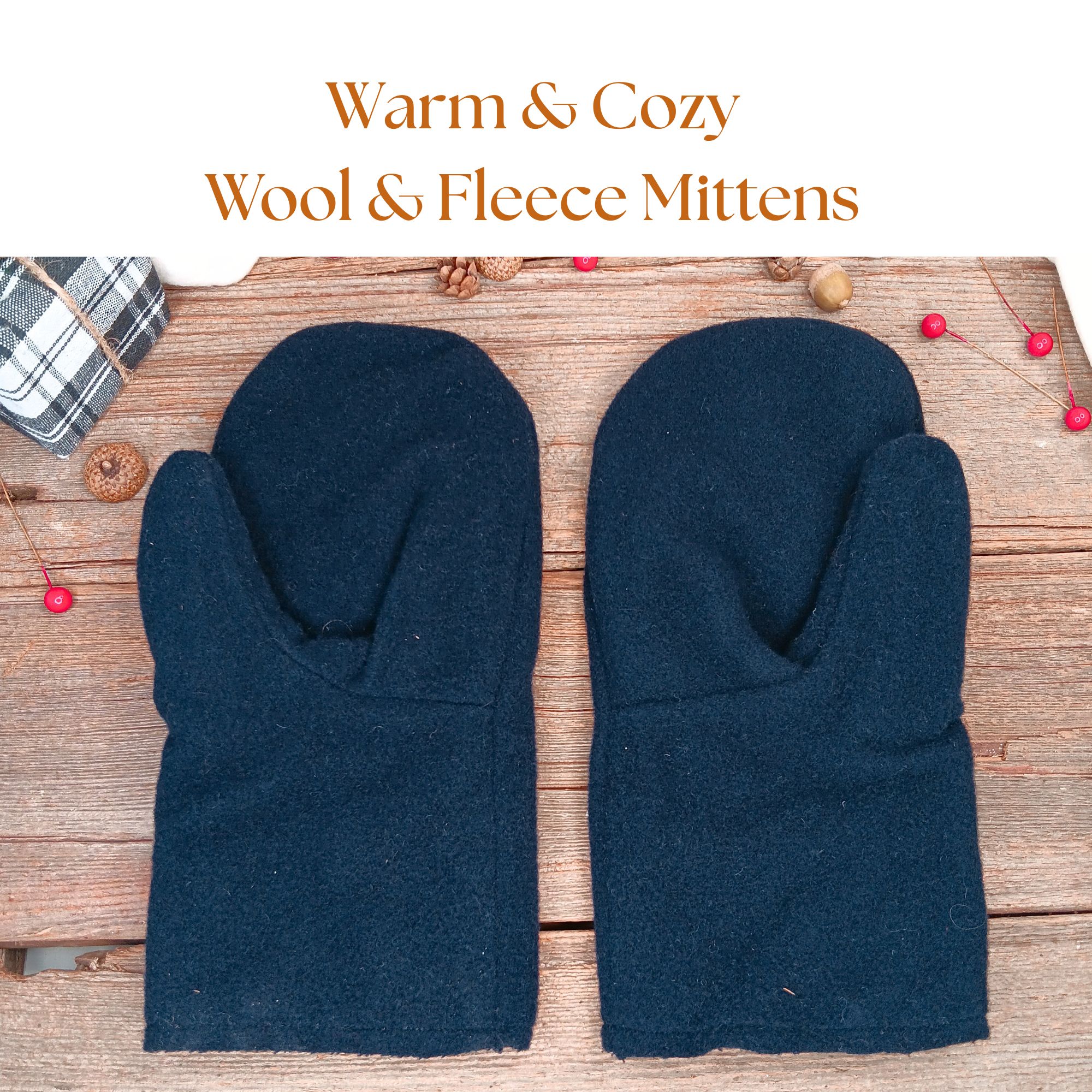 • Upcycled Wool Mittens are handcrafted from recycled wool sweaters & wool coats. All fiber content is printed on the tag of each pair of felted wool mittens and in the description box of each picture.