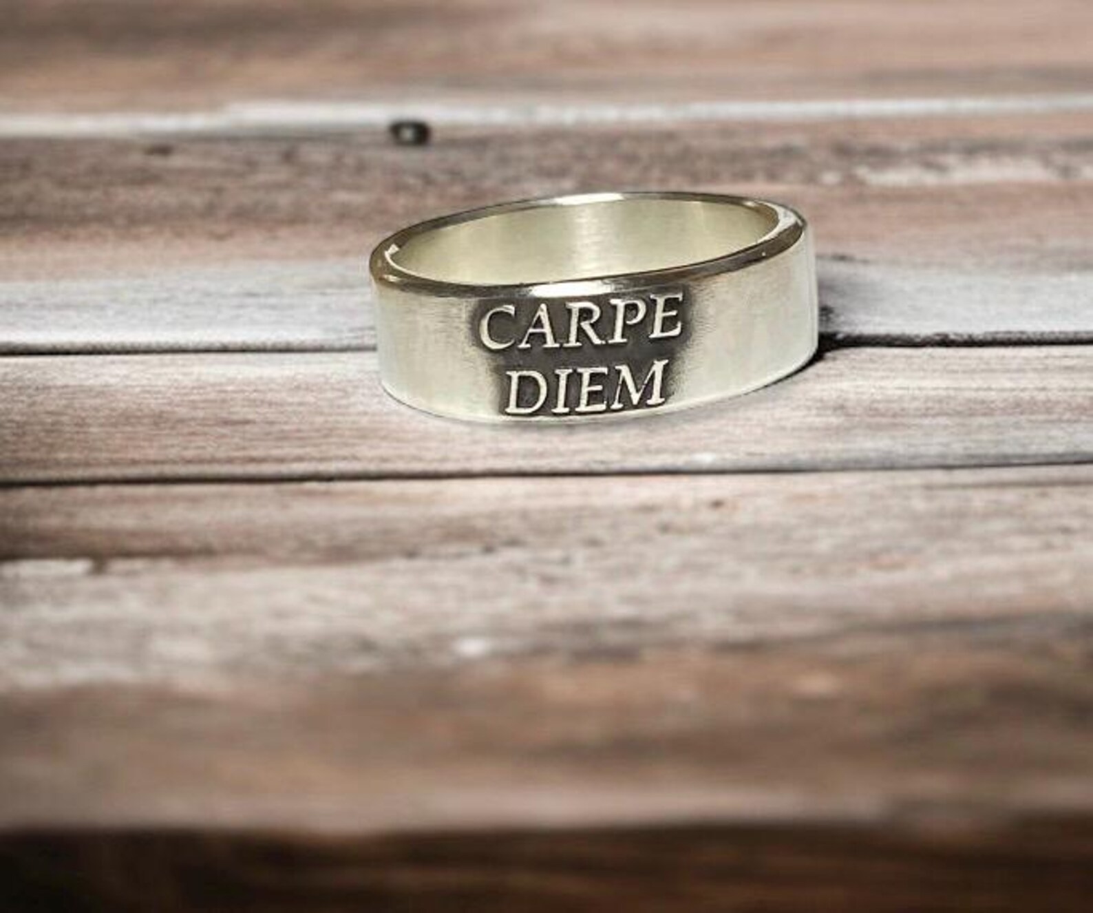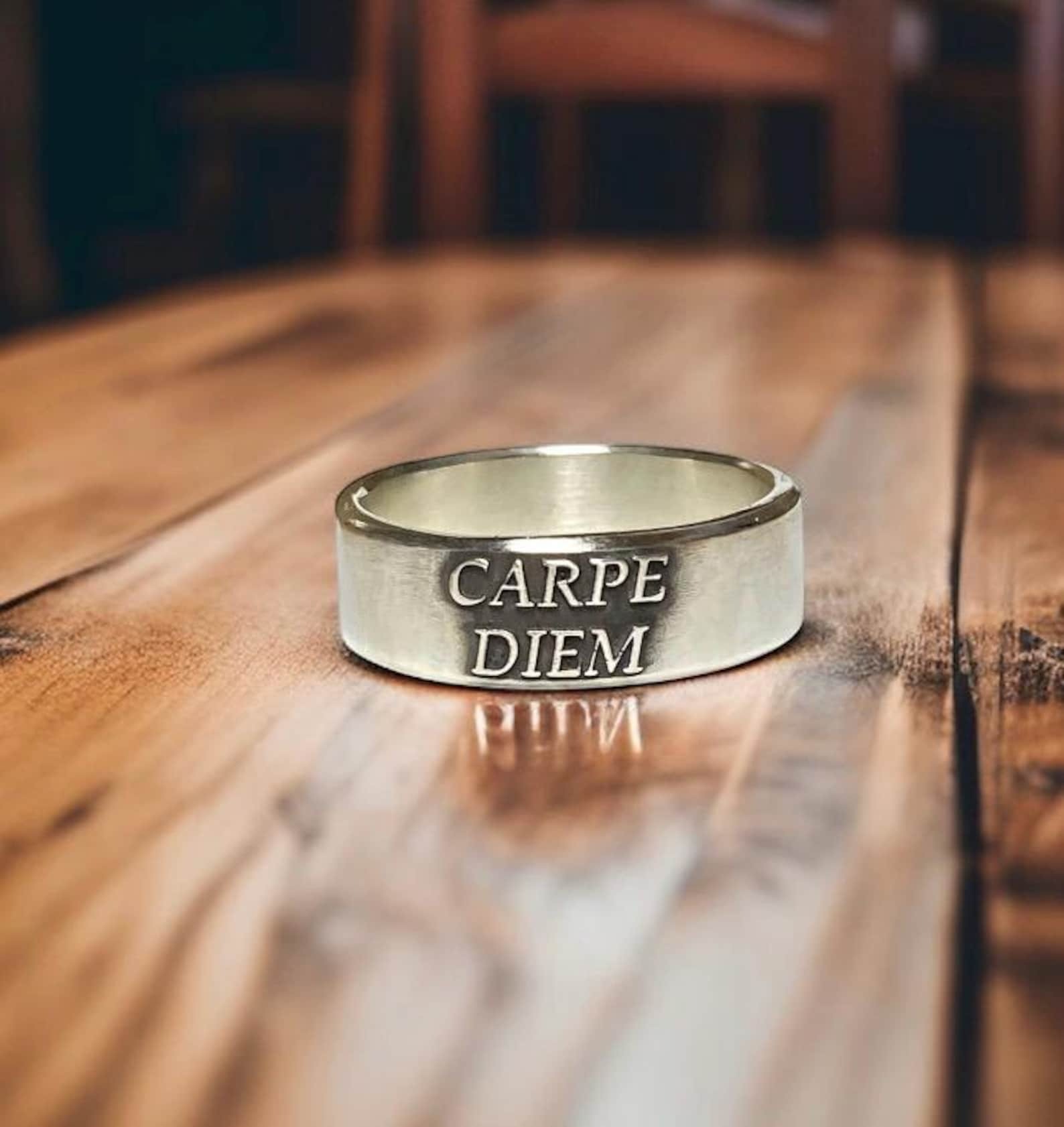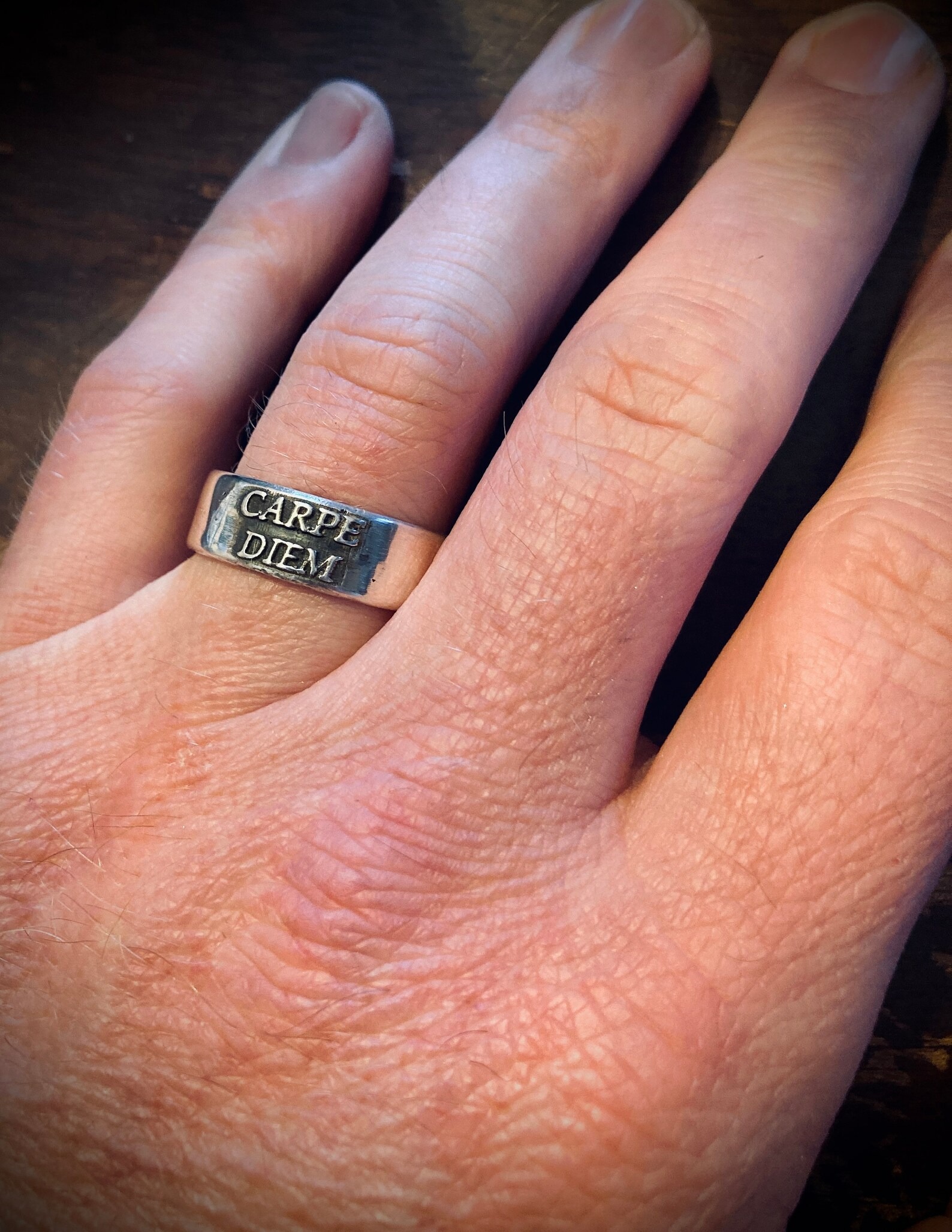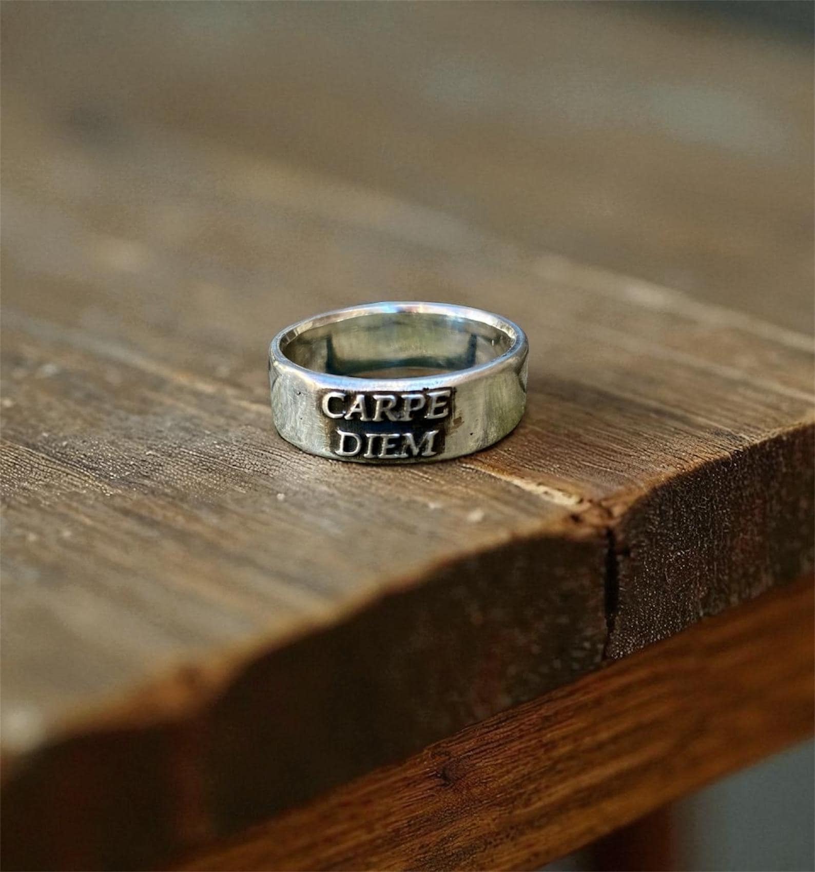 Carpe Diem—seize the day, wear the reminder. Solid .925 sterling silver, cast and finished by hand—no factory, just my little shop in Montana. Tough enough for everyday; bright enough to catch the light.