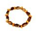 This is a striking piece of artisanal jewelry. The bracelet features Old Palmwood Twist beads alternating with lighter colored, striped hand-carved wood spacers from Peru.