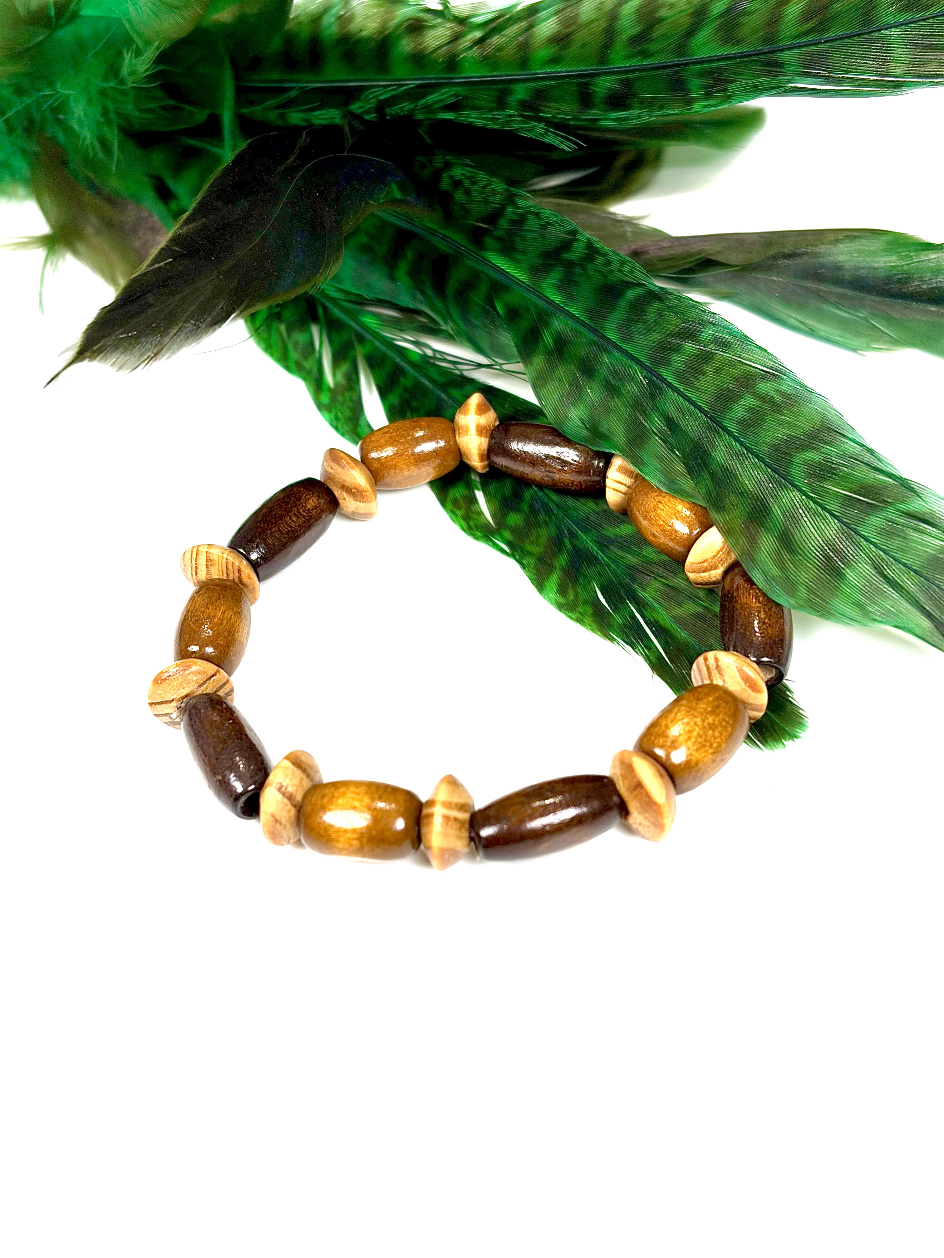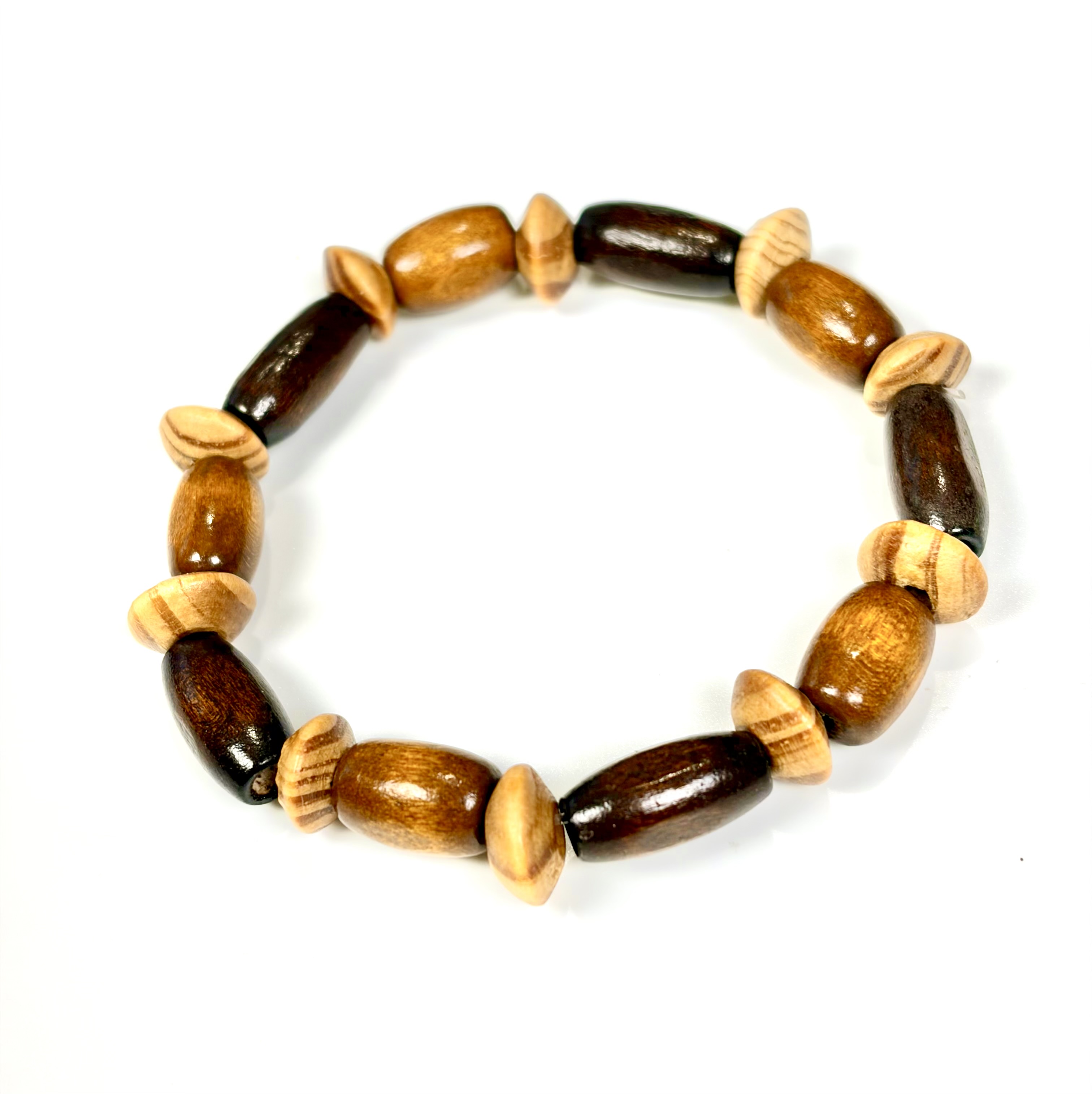 This handcrafted wooden bead bracelet combines rugged natural elements with a refined aesthetic, making it the perfect accessory for the modern man. Featuring a rhythmic pattern of polished dark ebony and warm oak-toned barrel beads, it is accented by unique, ridged disc spacers that add a tactile, artisanal touch.