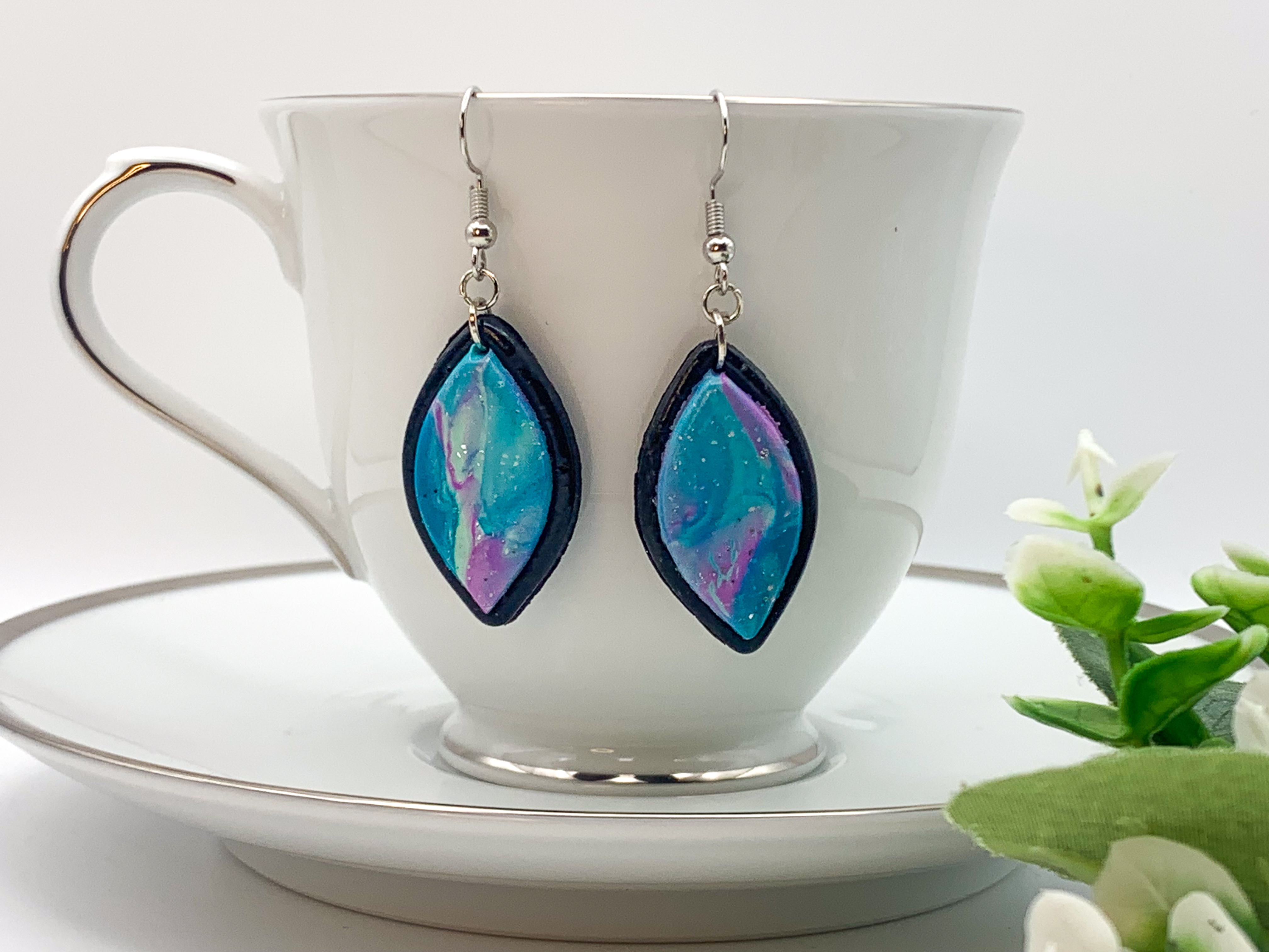 Dive into a sea of color with these dreamy ocean-inspired earrings! Swirls of turquoise, lavender, and hints of sparkle create a magical marbled effect that feels straight out of a fairytale.