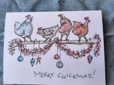 This fanciful flock of hens are eager to join in the fun, wishing your friends a "Merry Chickmas!" Send it from your whole flock.....errrr, family!