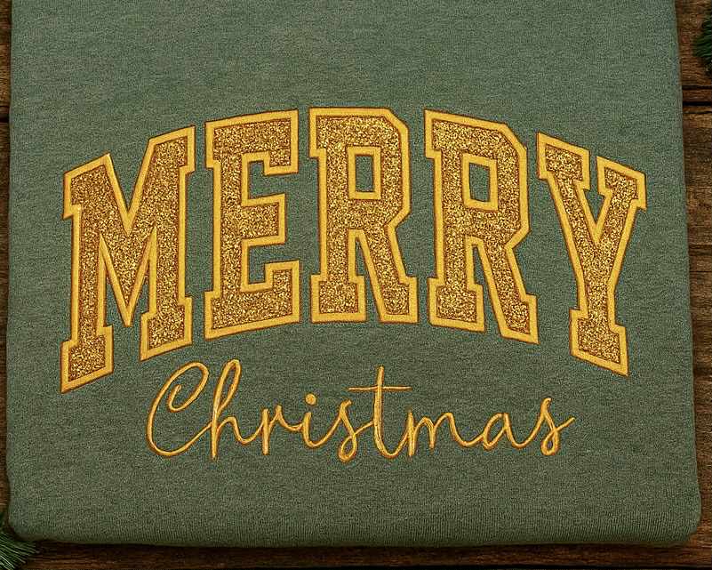 Want to outshine your friends this Christmas? Then you need this crewneck sweatshirt that is not only beautiful, it is super cozy and comfortable. The word MERRY sparkles in gold glitter HTV and is outlined in a smooth satin stitch on a heather green sweatshirt. Below it, the word Christmas is embroidered in gold, in a satin stitch. Check sizing chart in pictures. If you don't see the size or color you want, please reach out to me by clicking "contact maker" and I will do what I can to help you out. Please see my other listings for more colors and sizes