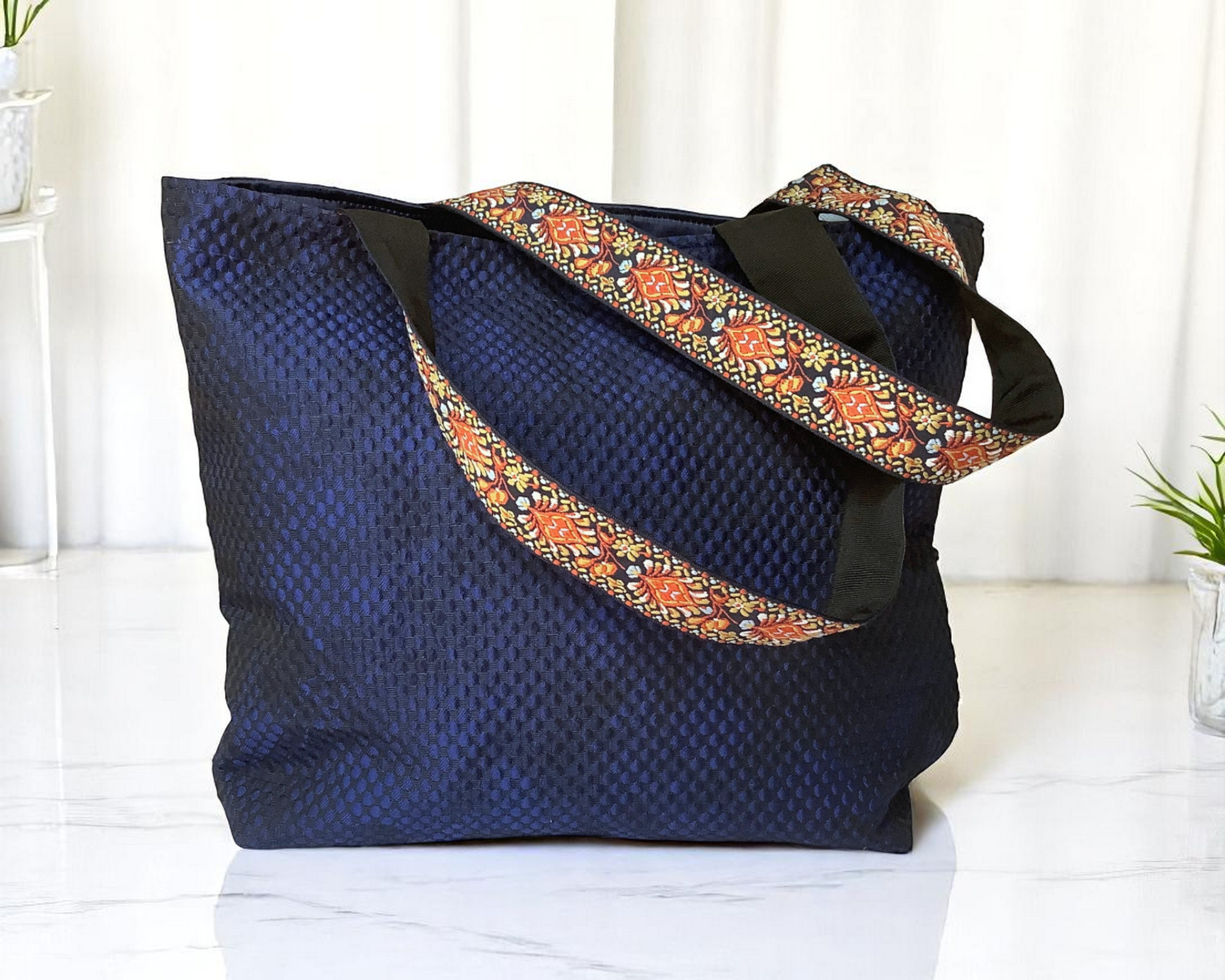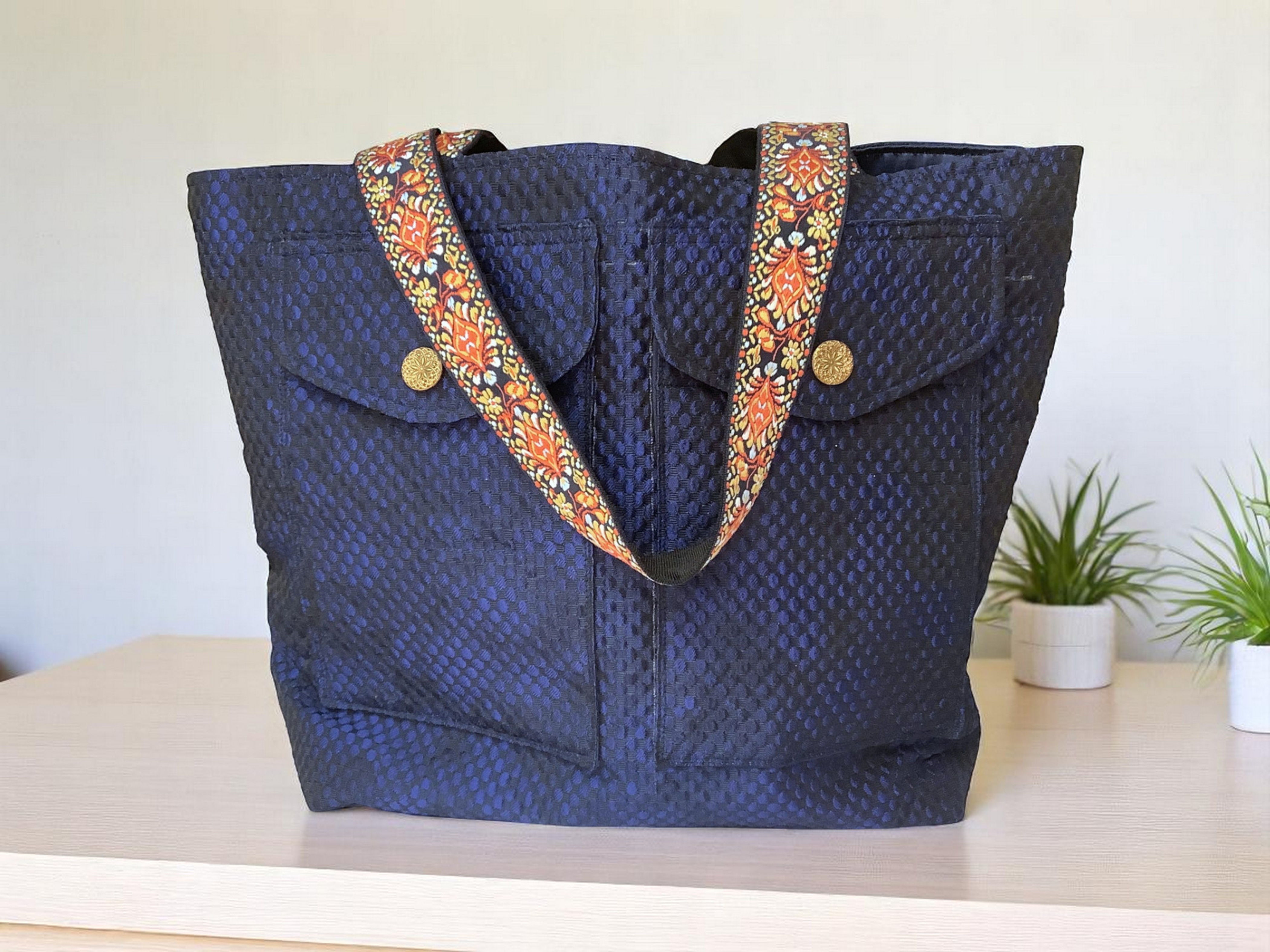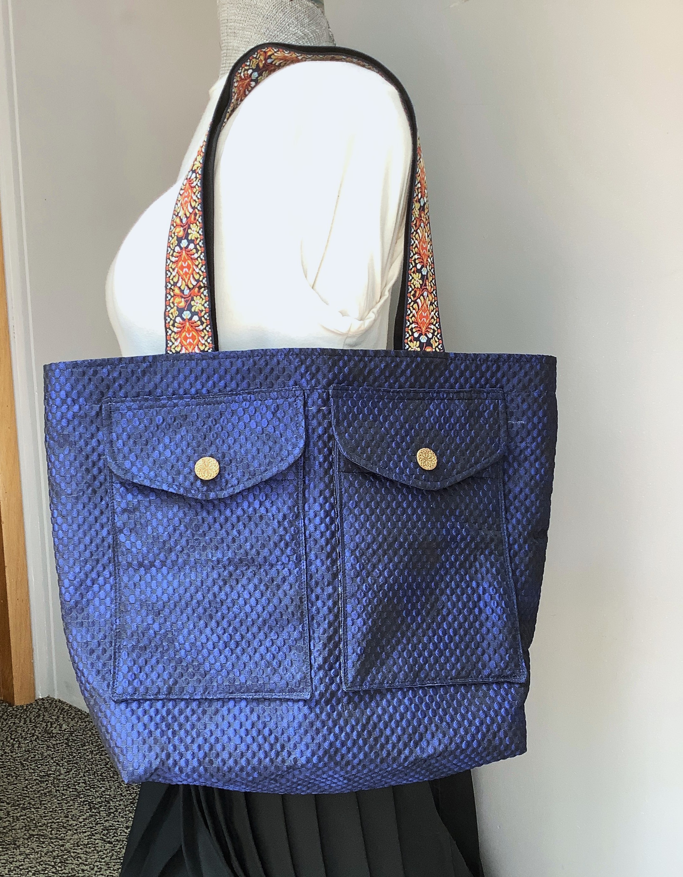 I have had this fabric for quite a few years, wondering what to make with it. This tote was perfect! And then found the embroidered belt for the straps.