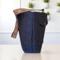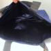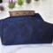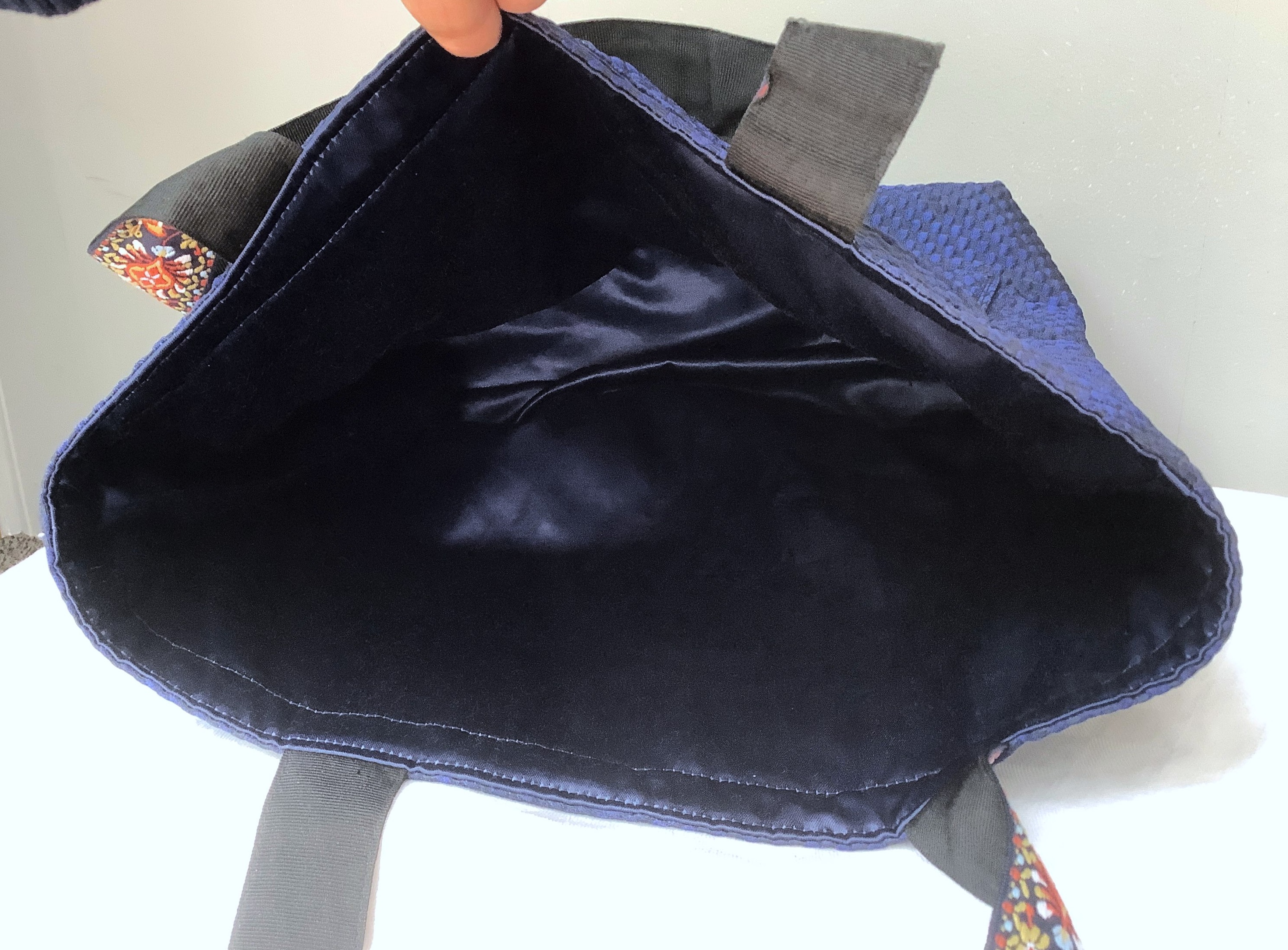The purse and pockets are lined with a navy blue silky polyester fabric