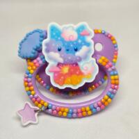 Please note that these pacifiers are for adults only. These are not suitable for babies or children. Please do not buy them for children. Teat/nipples are way too large for children and are handmade, which means small pieces are used to decorate them. Please keep in mind pacifiers may be blemished, they are handmade and can have a bit of extra adhesive, please hand wash your pacifiers and let air dry. You may also use pacifier wipes, please handle with care. Thank you for giving my pacifiers a new home.