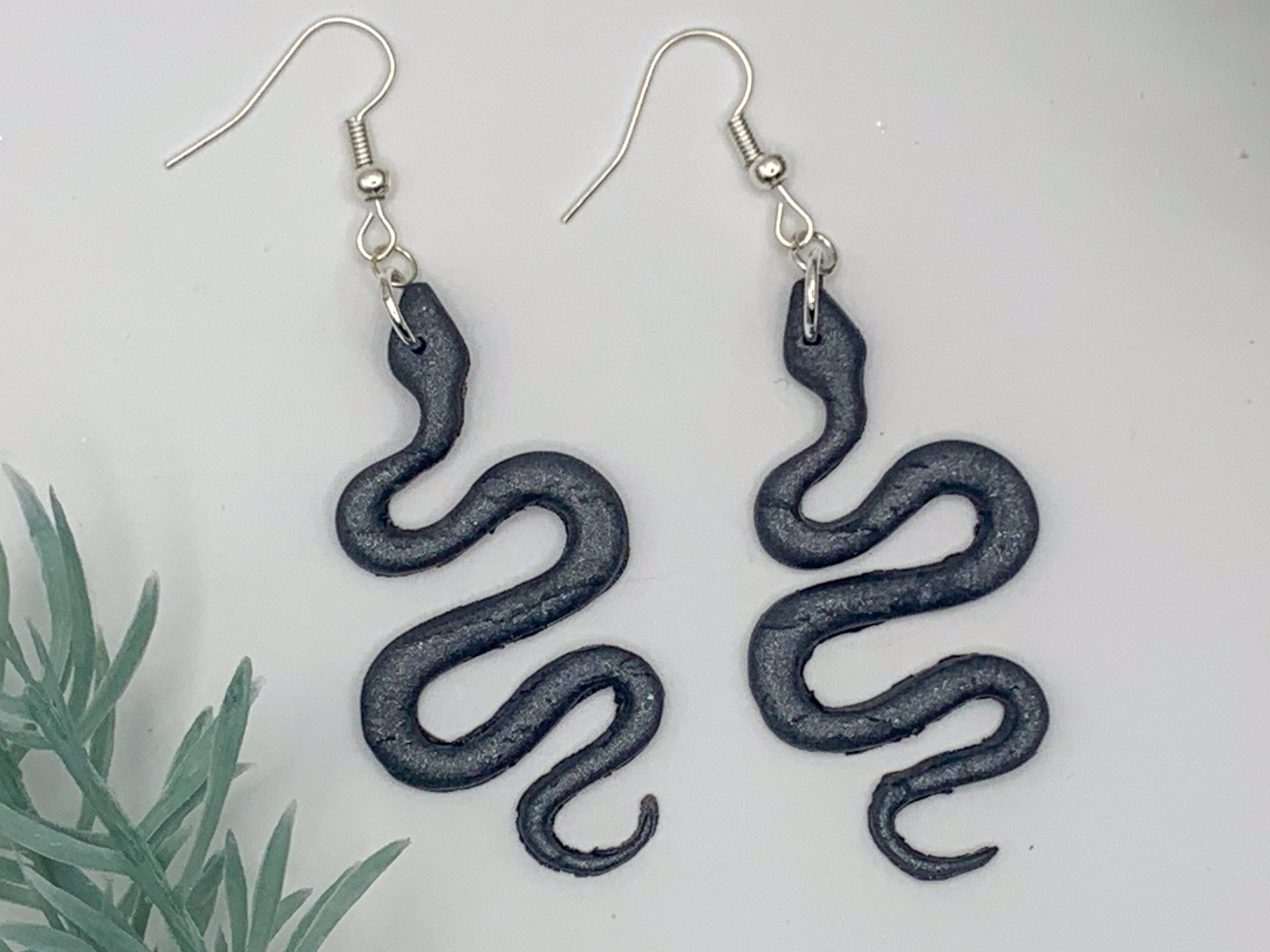 Bold and edgy! These black serpent earrings are sleek, lightweight, and perfect for adding a mysterious touch to your look.