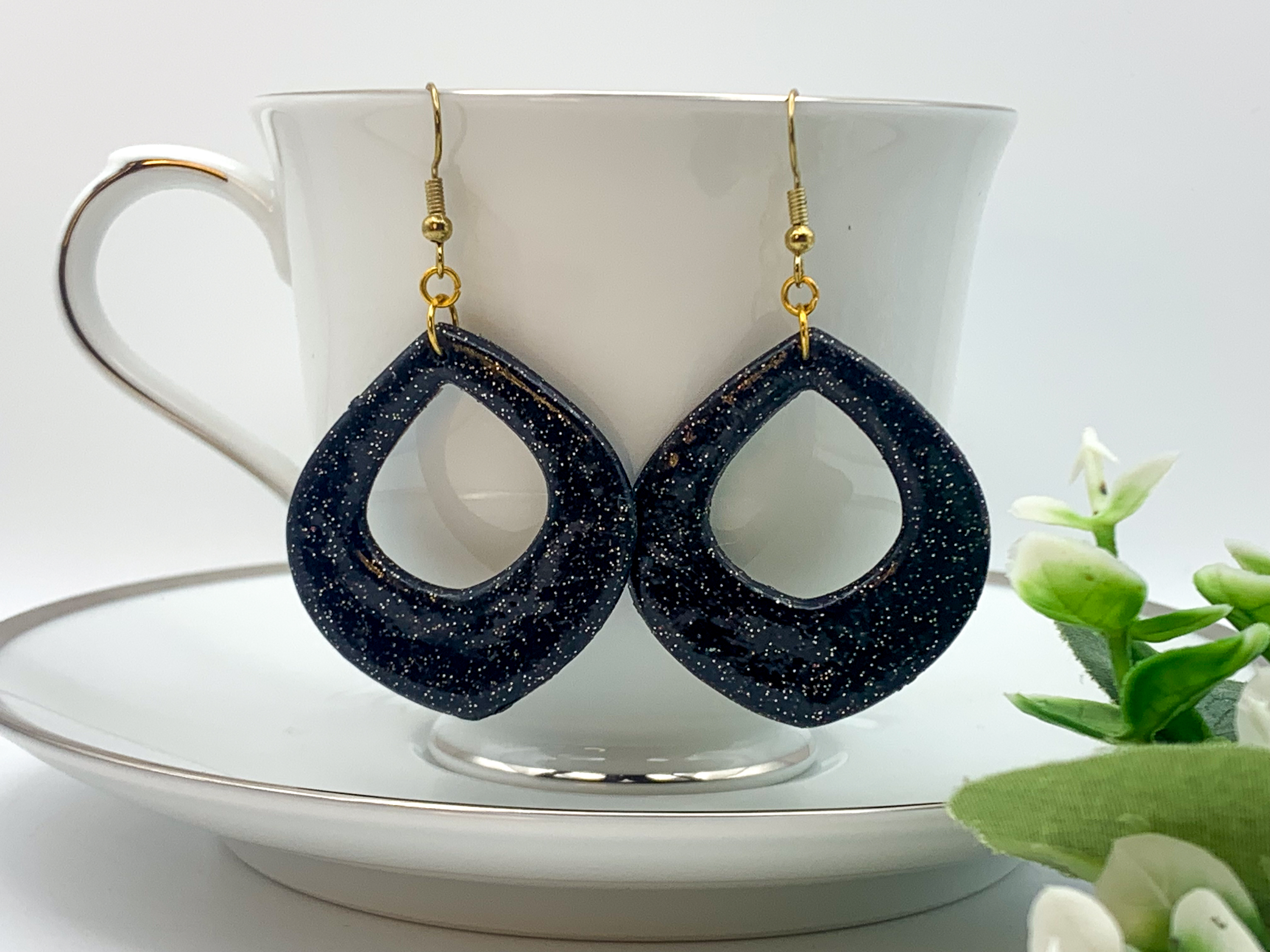 These bold black teardrop hoops shimmer with a galaxy of glitter! Lightweight and chic, they’re perfect for adding drama to any outfit without weighing you down. ✨