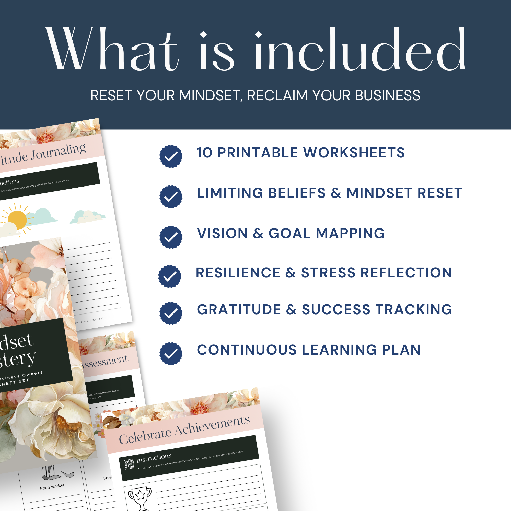 This digital download features 10 powerful worksheets focused on mindset, reflection, and personal growth for entrepreneurs: