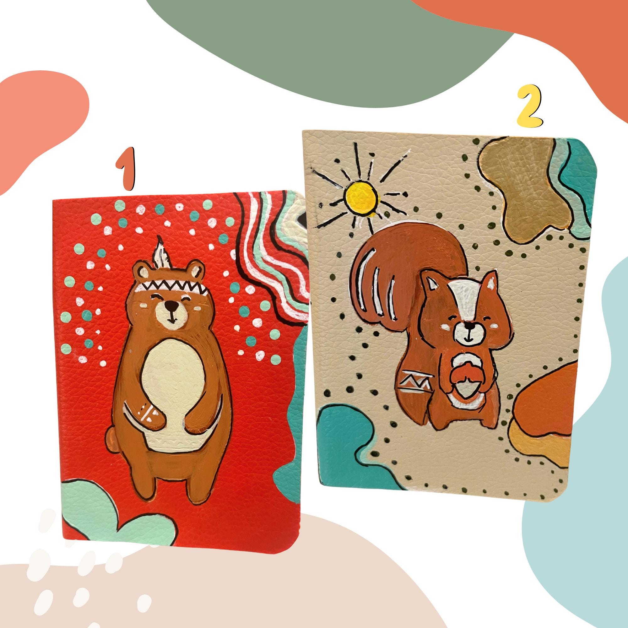 Adorable Hand-Painted Mini Faux Leather Notebooks – Boho Forest Animal Design (Bear, Fox, Squirrel)