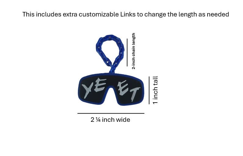 Description: Includes 1 mini yeet emblem 2" wide 1" tall & 1 chain at 2". Extra chain links bundled to customize chain length as needed.