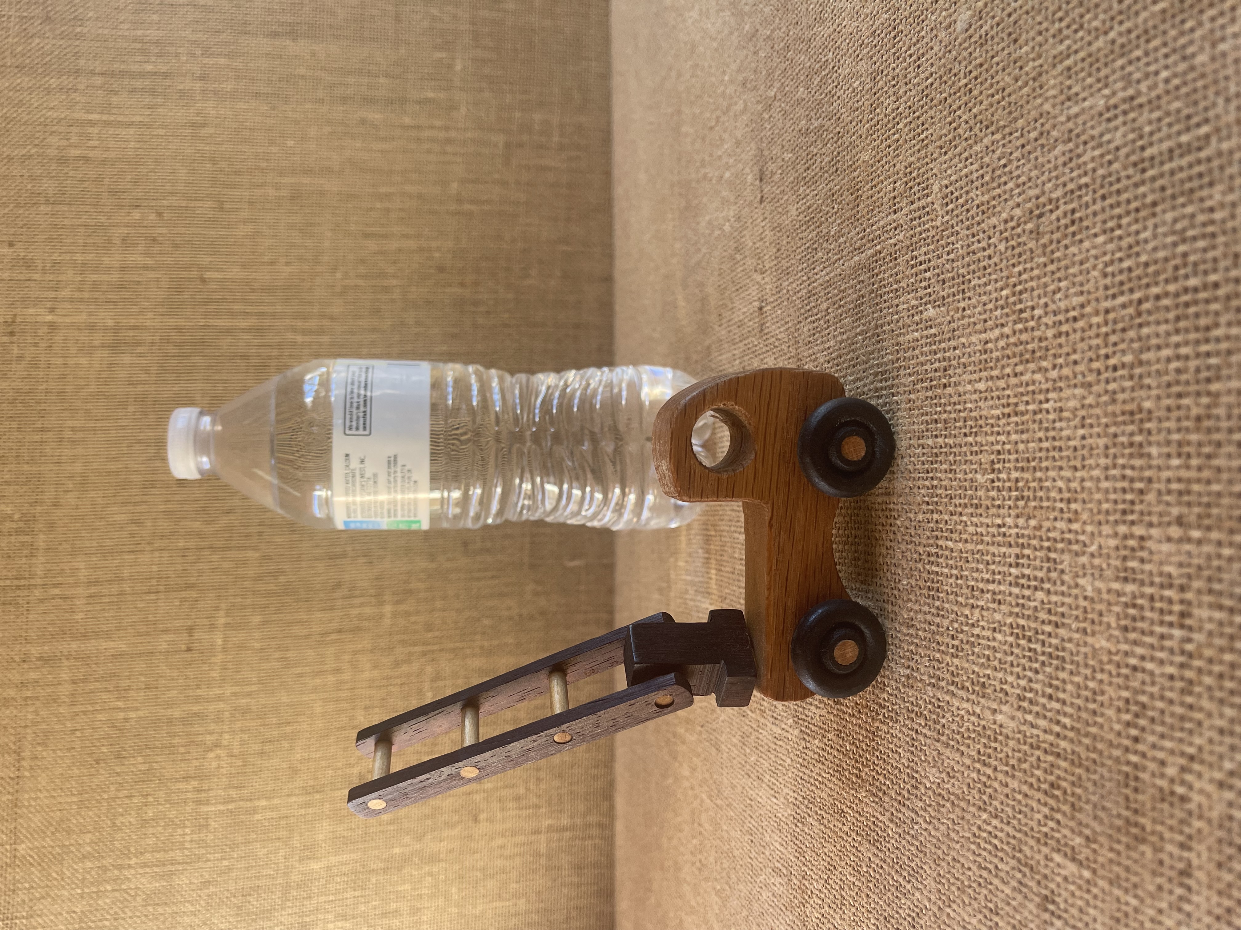 Handcrafted wood laddertruck model featuring ,oak , paduak ,woods.