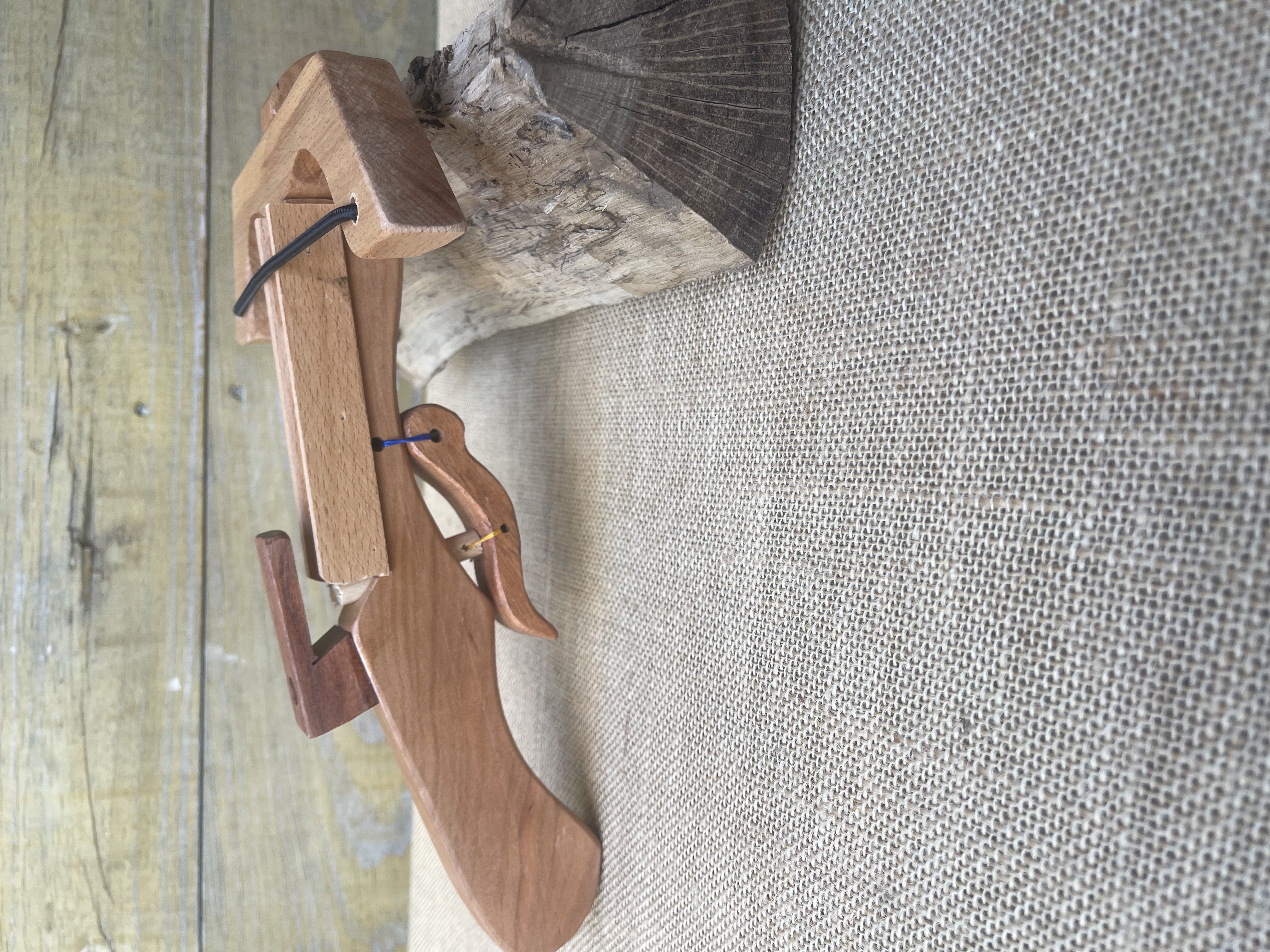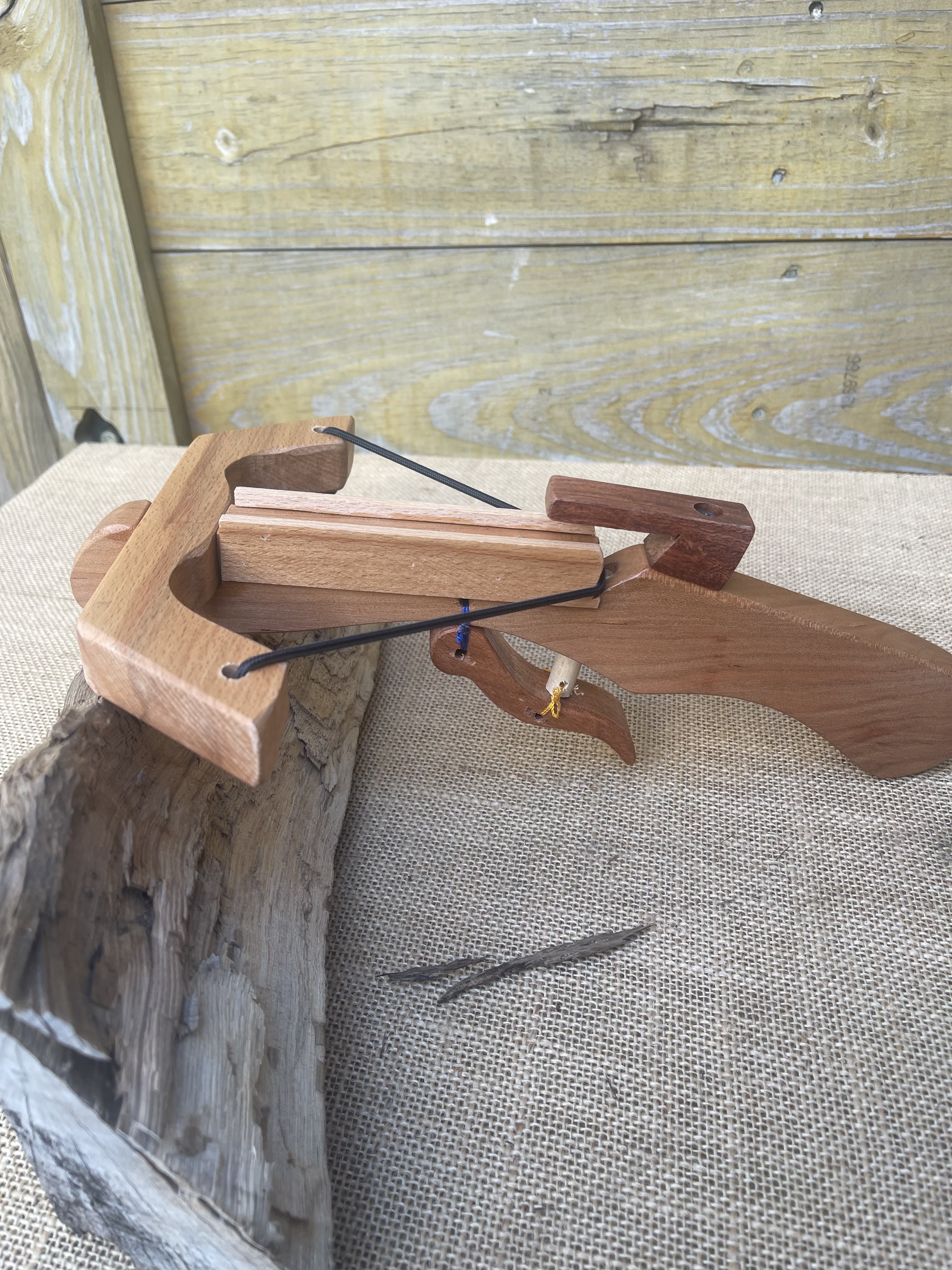 This mini wooden crossbow is carefully handcrafted from natural wood,