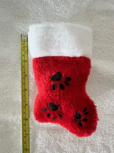 The Mini Stocking can be filled with small peanut butter or small pumpkin bone-shaped dog treats. The stocking is about 6 1/2 inches long. This is a fun item filled with treats for your fur baby or to give as a gift to special fur baby friends. The treats are crafted with high-quality, human grade ingredients that are easy to recognize and pronounce. Each peanut butter treat is made with whole wheat flour, peanut butter, eggs and honey. We source the eggs and honey locally and purchase other ingredients from a national certified organic grocery store. Each pumpkin treat is made with whole wheat flour, pumpkin, eggs, peanut butter and cinnamon. For the pumpkin treats, we only use the cinnamon identified by Consumer Reports as the safest grocery store cinnamon brand. Each pawprint bag has approximately 30 small pieces that are about 1" long to feed as a tasty dog treat. To maintain freshness, store the package in a cool, dry place. As each beloved dog is unique and may have specific dietary needs, please review the ingredient list carefully and consult with your veterinarian if you have concerns about any sensitivities.