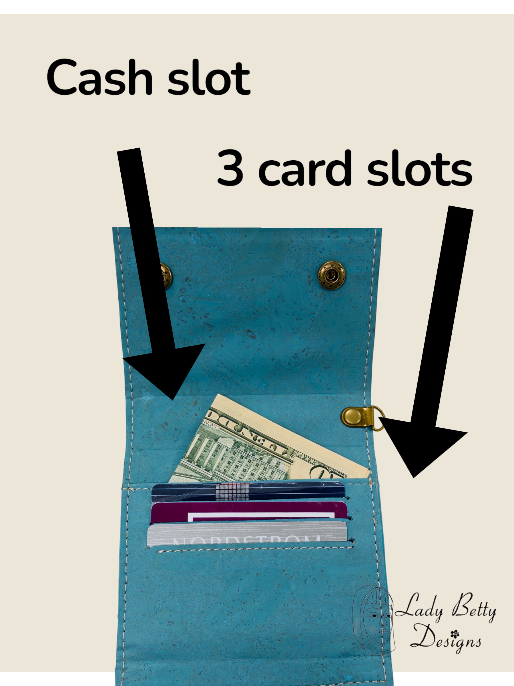 Smart Organization: Includes 3 recessed card slots, 2 folded cash areas, and a convenient ID window.