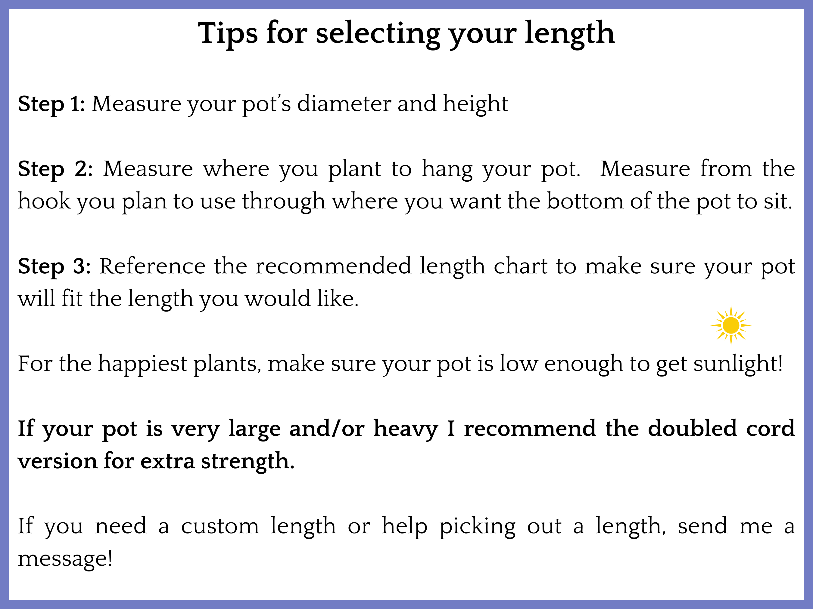 âž¼ DOUBLE CORD The doubled cord are great if you have a pot that is very large and/or heavy or if you just prefer the chunkier style! It is the same exact design but the number of cords used to create the plant hanger is doubled giving it a chunkier look and making it extra strong for heavier pots!
