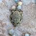 All metals are made in the USA, and I never use anything that contains nickel or lead. Many of my metal focals used in the more ornate, grand designs are made in the USA from vintage, victorian-era molds. Gemstones are all natural - not simulated or synthetic in any way. Glass beads are European made, and occasionally I will use genuine Swarovski crystal elements in my designs.