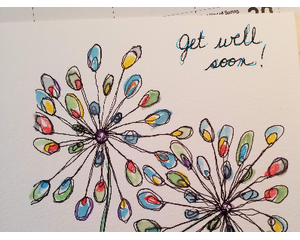 Why did I start selling cards in the first place? Well, because my Mom told me to! For years I had been making cards to send to my family and for years my Mom kept saying I should sell them, so finally, one day, I decided to take a chance. I created about 75 cards, put them in a small cardboard apple box, and set up shop at a local craft fair. At that time, each card was created and sold, and if someone wanted another the same, it was hit or miss if it would work out the same. Since my business has expanded so much, I now create an original and then I am able to use my home printer and print out multiple copies, thus enlarging my product line and inventory. The insides of these cards are purposely left blank so that there is plenty of room to write, to share life and encouragement with others. This was done purposely, with my Uncle Jim in mind, as I have fond memories of letters from Uncle Jim for no specific reason, but simply to check in and let us know he was thinking of us. Connection to others is SO important for our wellbeing and these cards are made with that in mind. I love when friends gather in front of my card racks and giggle together over designs or exclaim, "Oh! I know just the person who needs this card!" That's truly what brings me the greatest joy in this endeavor.