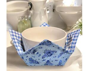 Bowl Cozy -Blue Floral Bees, reversible, microwaveable