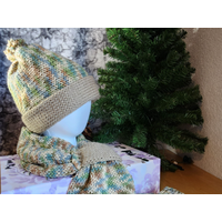 This beautiful set was inspired by a skirt a character was wearing on Miss Marple mysteries. The scarf is my original design featured on Koala Knits and Knaks you tube channel. It is elegant and warm. It is both masculine and feminie. This is a reversible hat, can be worn as a brimmed beanie or a slouchy hat.