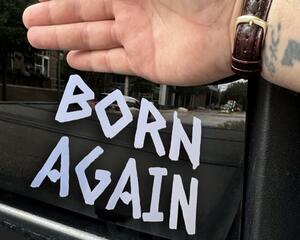 Born Again Vinyl Decal: Christian Bumper Sticker, Off White